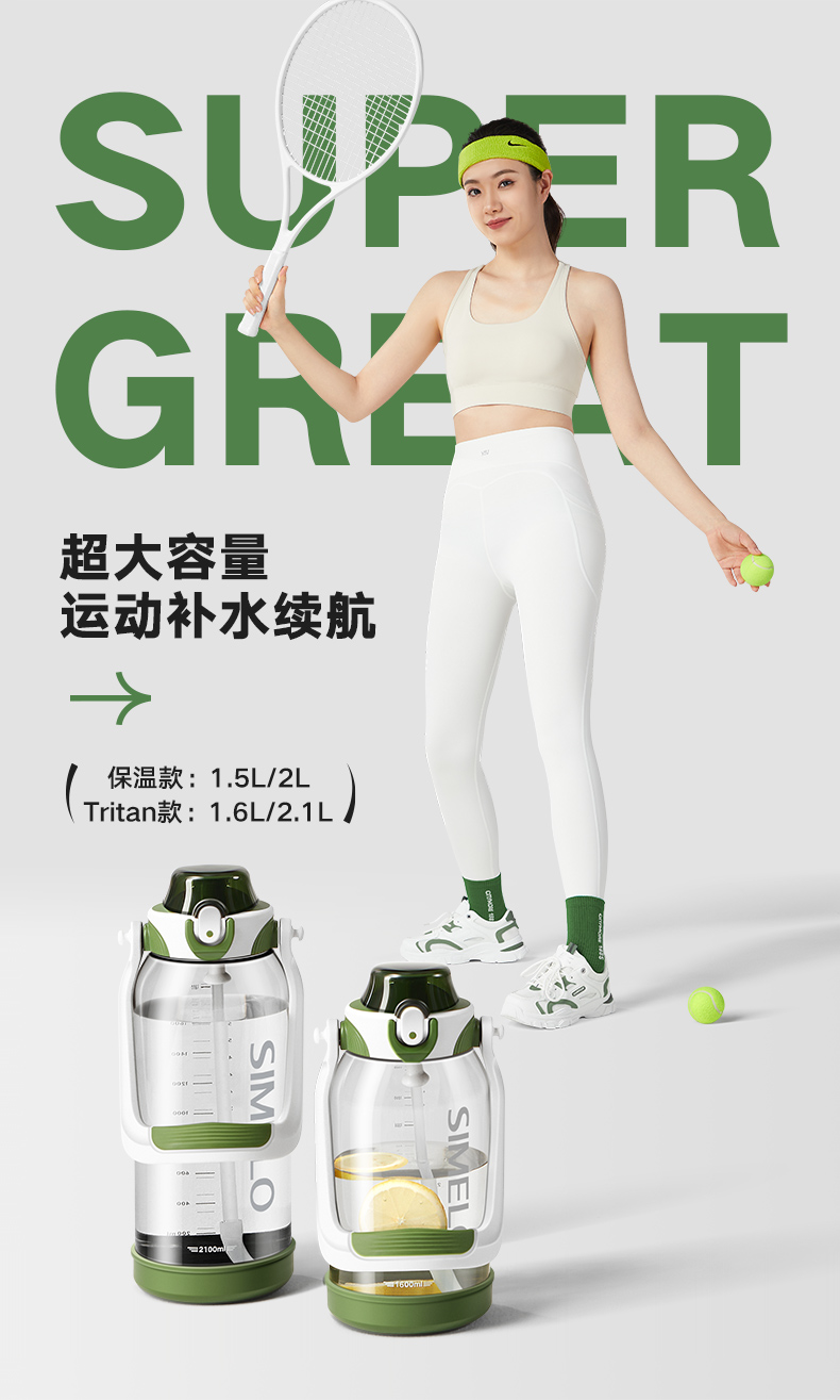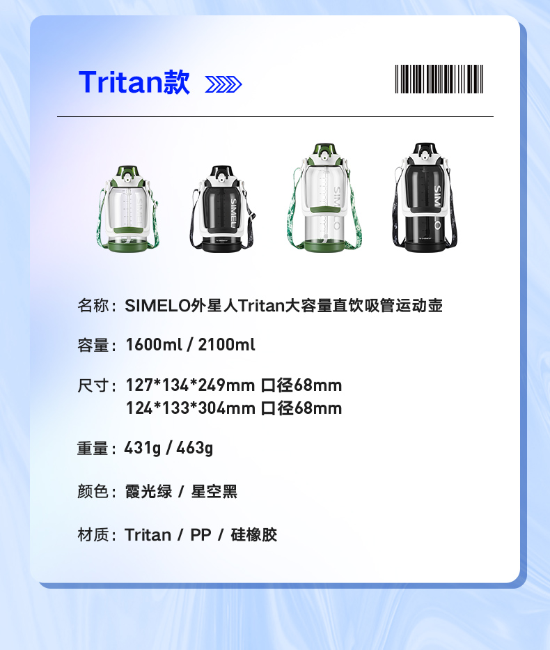 商品名称:SIMELO印象京都外星人Tritan大容量直饮吸管运动壶2100ML(单位:个) 绿色