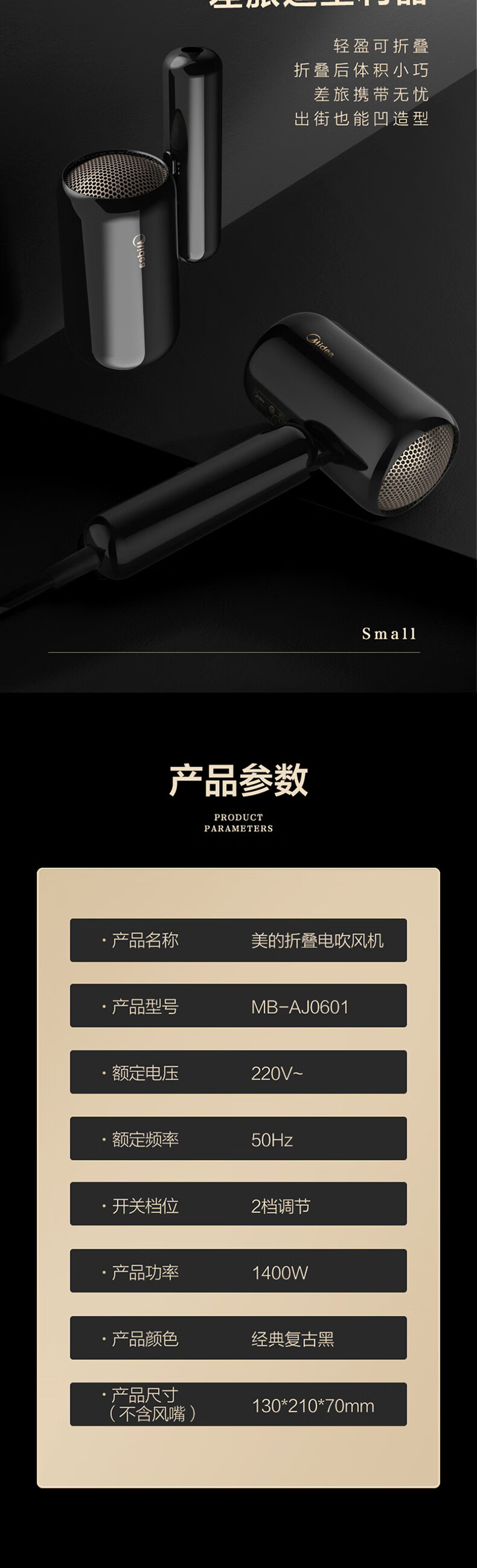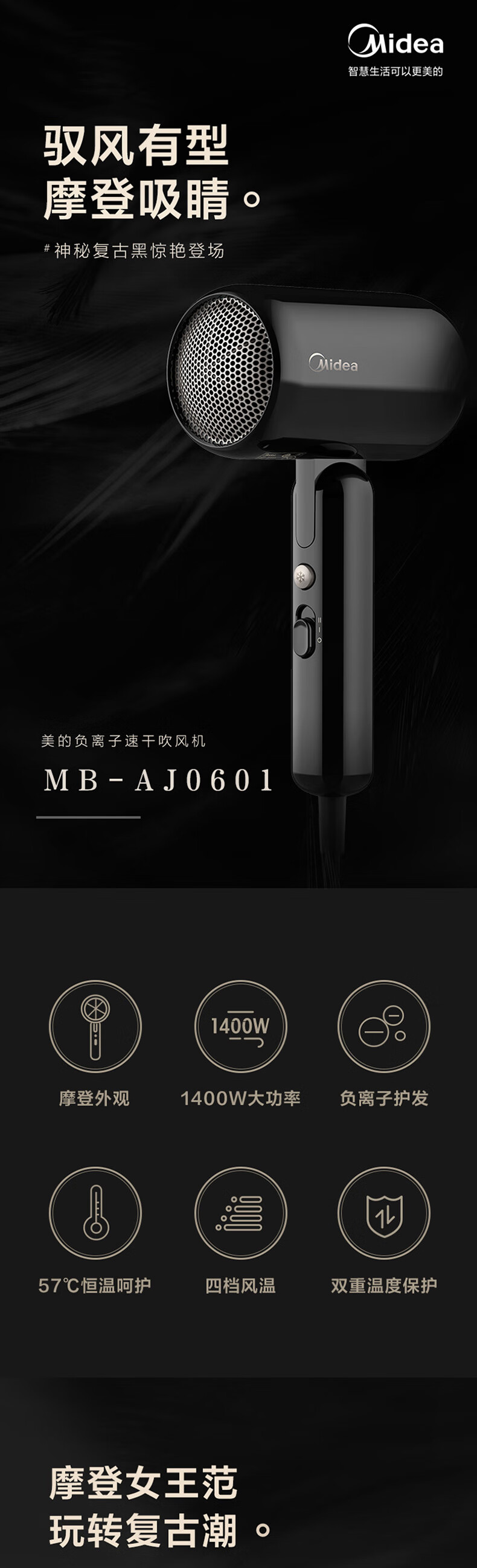 商品名称:美的电吹风MB-AJ0601(单位:台) 曜石黑