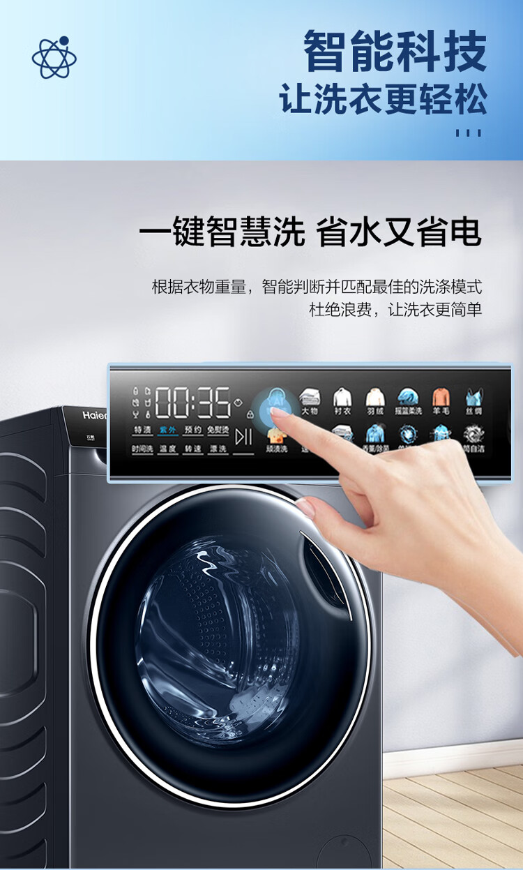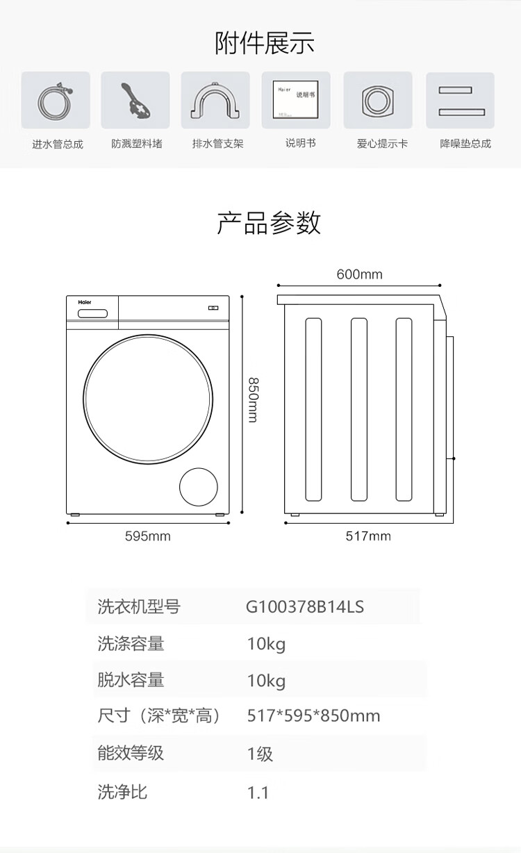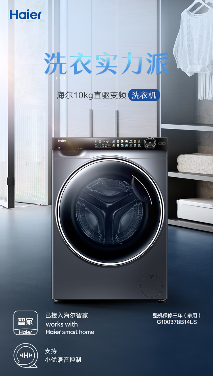 商品名称:海尔(Haier)滚筒洗衣机 10公斤变频全自动 G100318B14LS 单位:台 深灰色