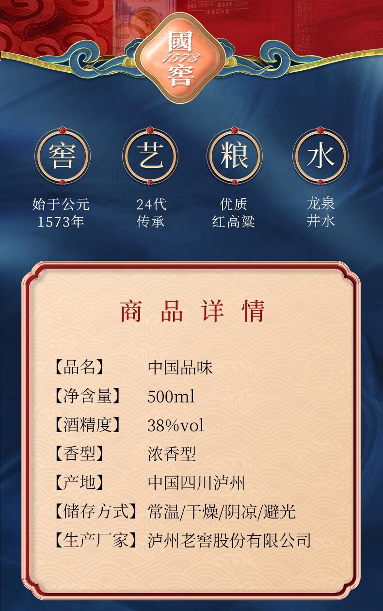 商品名称:国窖1573中国品味限量版 浓香型白酒38度 500ml*6整箱装 红色