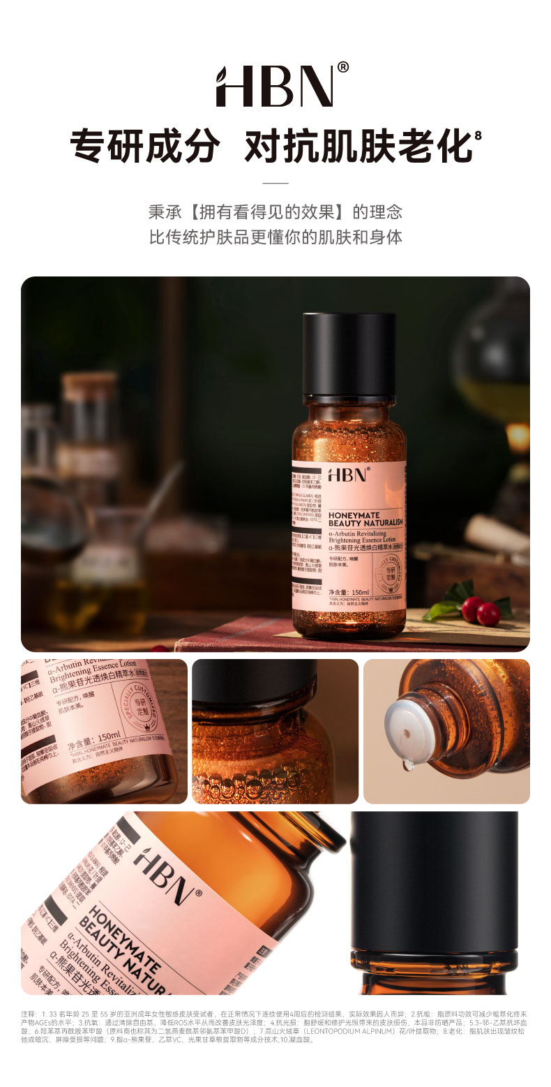 商品名称:HBN TZFGS0526 α-熊果苷光透焕白精萃水150ml 1瓶(含2个小样) 发光水 深灰色(单位:瓶)