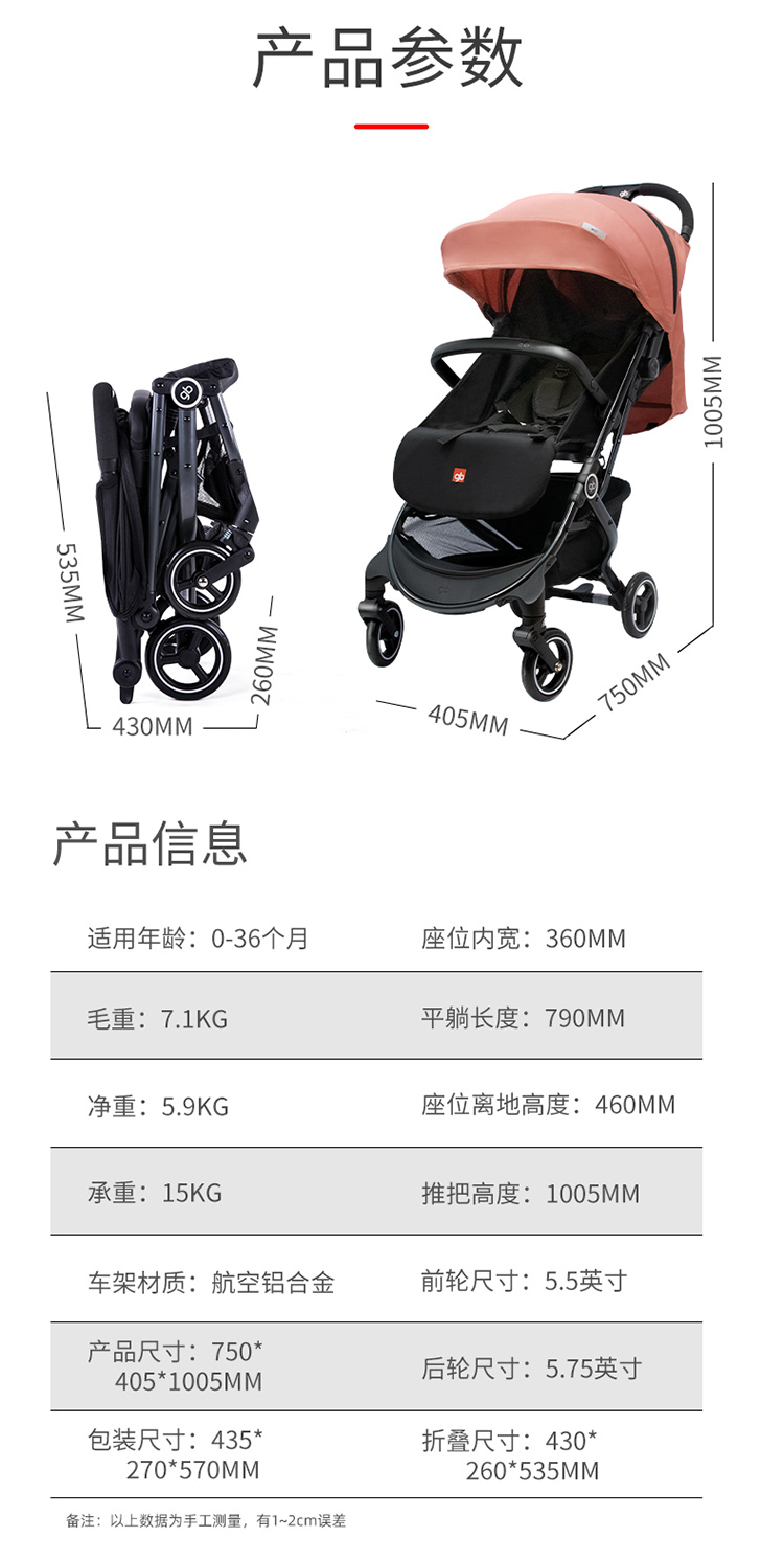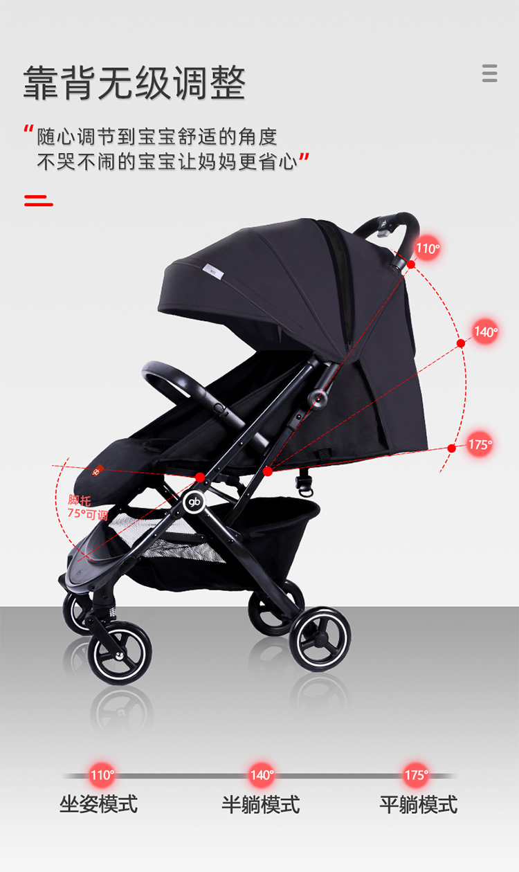 商品名称:好孩子(gb)婴儿车手推车轻便便携折叠宝宝儿童可坐躺可登飞机口袋车遛娃神器 D616S(单位:辆) 黑色