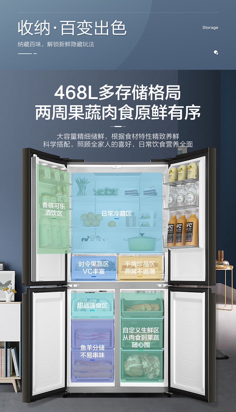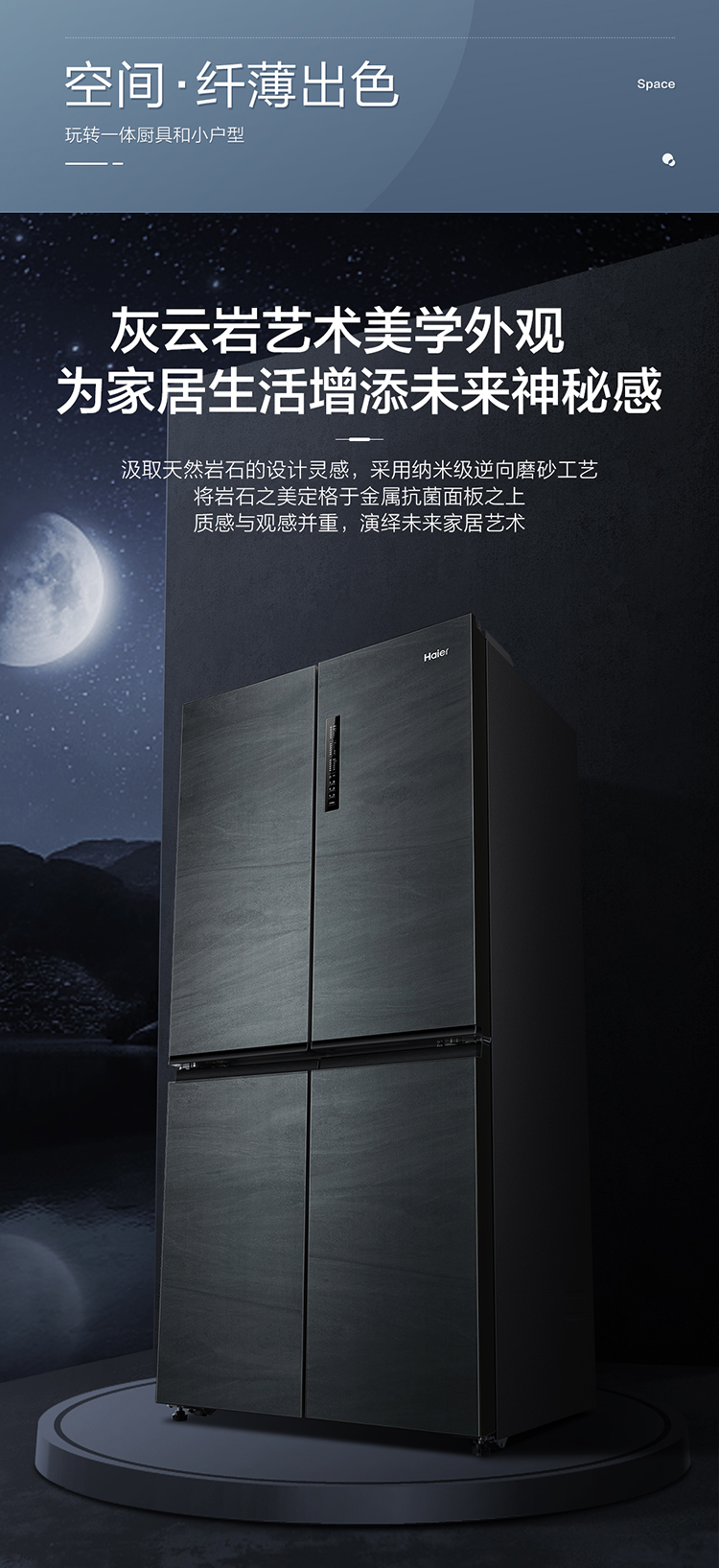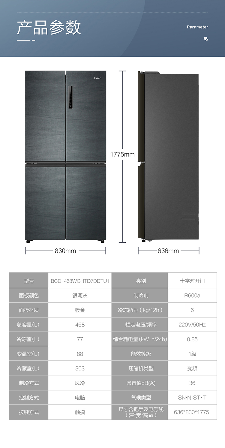商品名称:海尔(Haier) BCD-468WGHTD7DDYU1 风冷十字开门四门冰箱 灰色