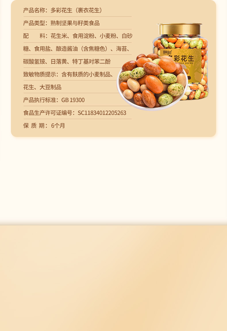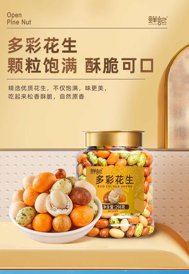 商品名称:鲜记多彩花生298g(单位:罐) 混色