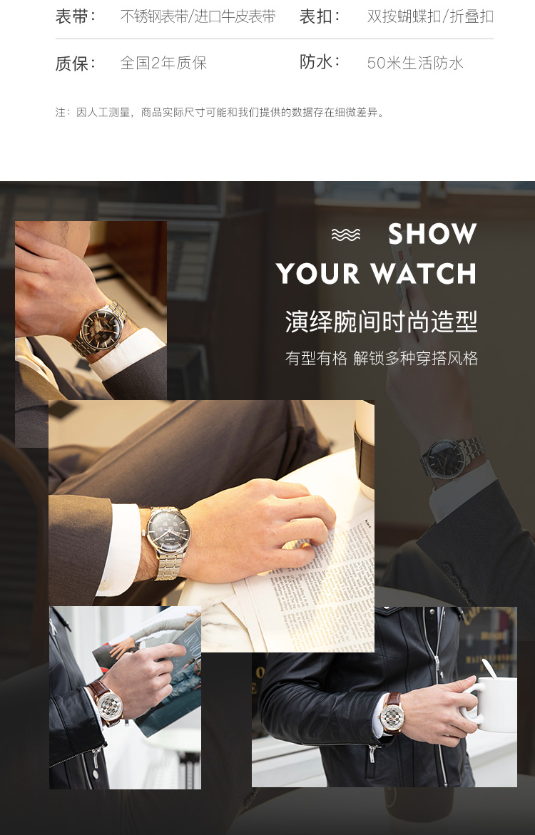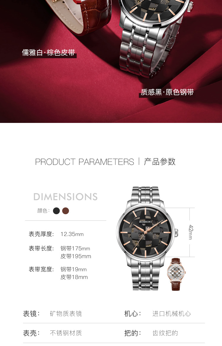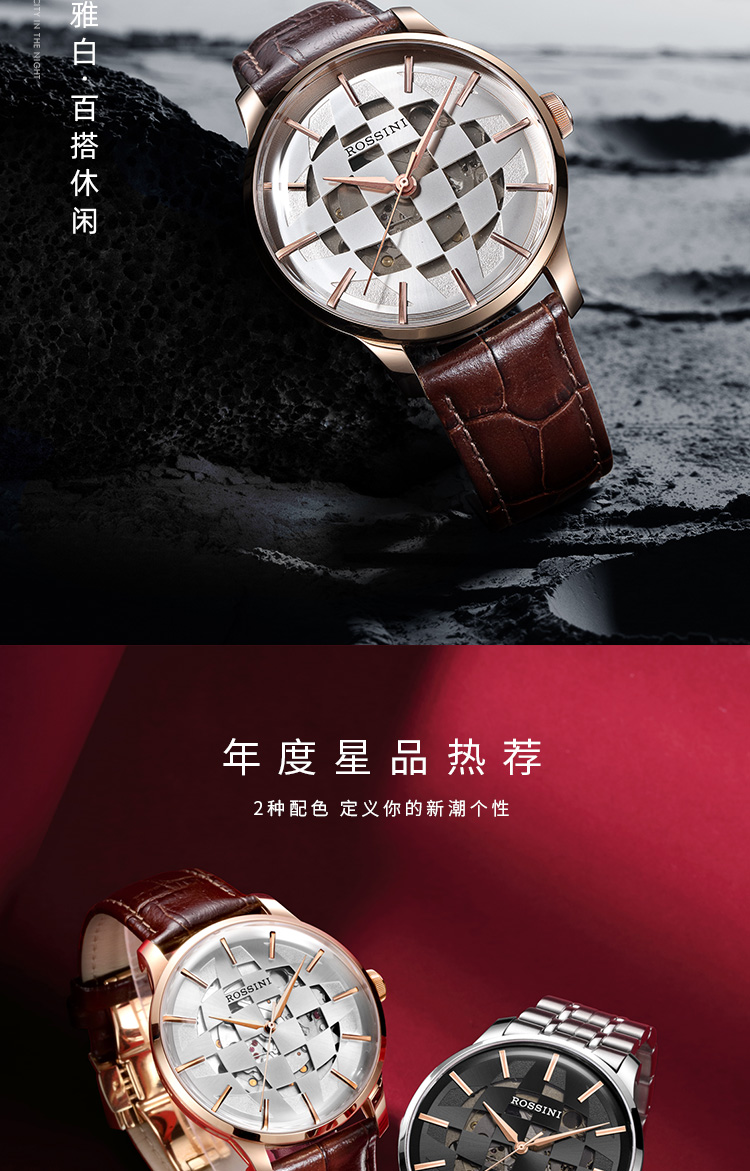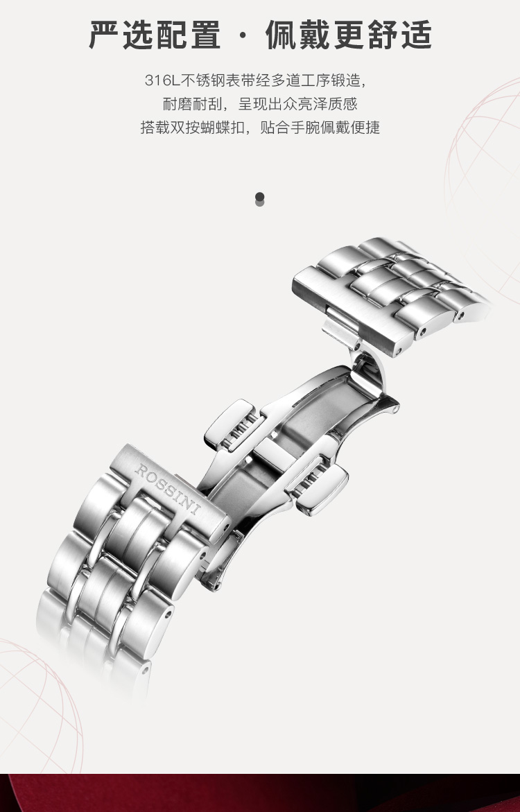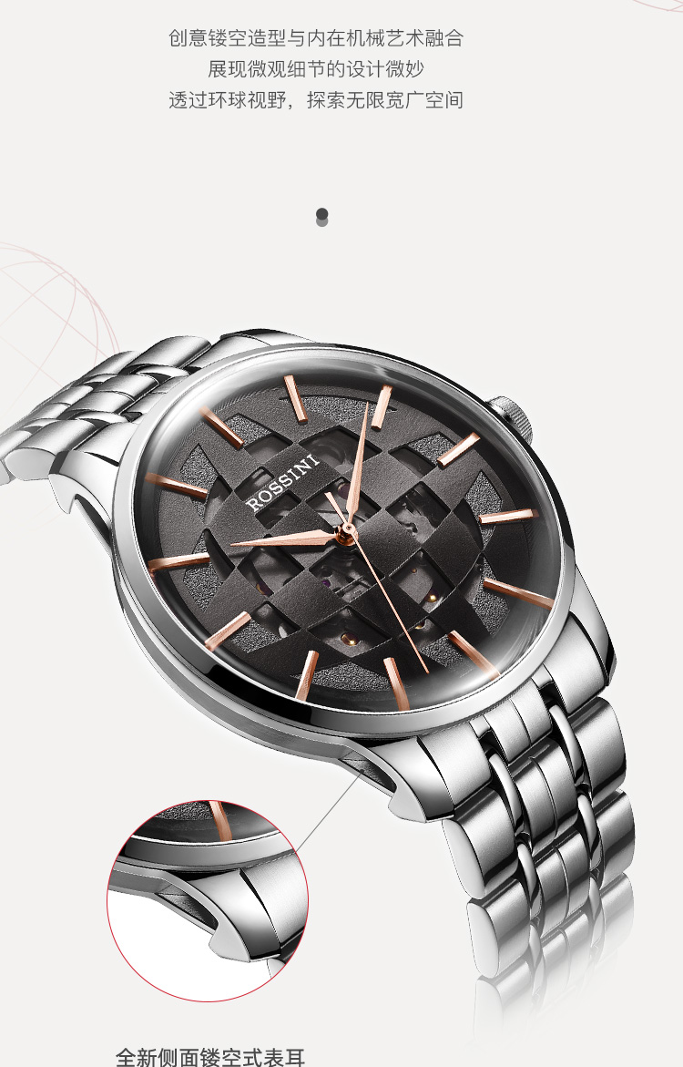 商品名称:Rossini罗西尼 启迪系列【专柜同款】机械手表环球镂空白盘皮带男表50027G01E(单位:块) 白色