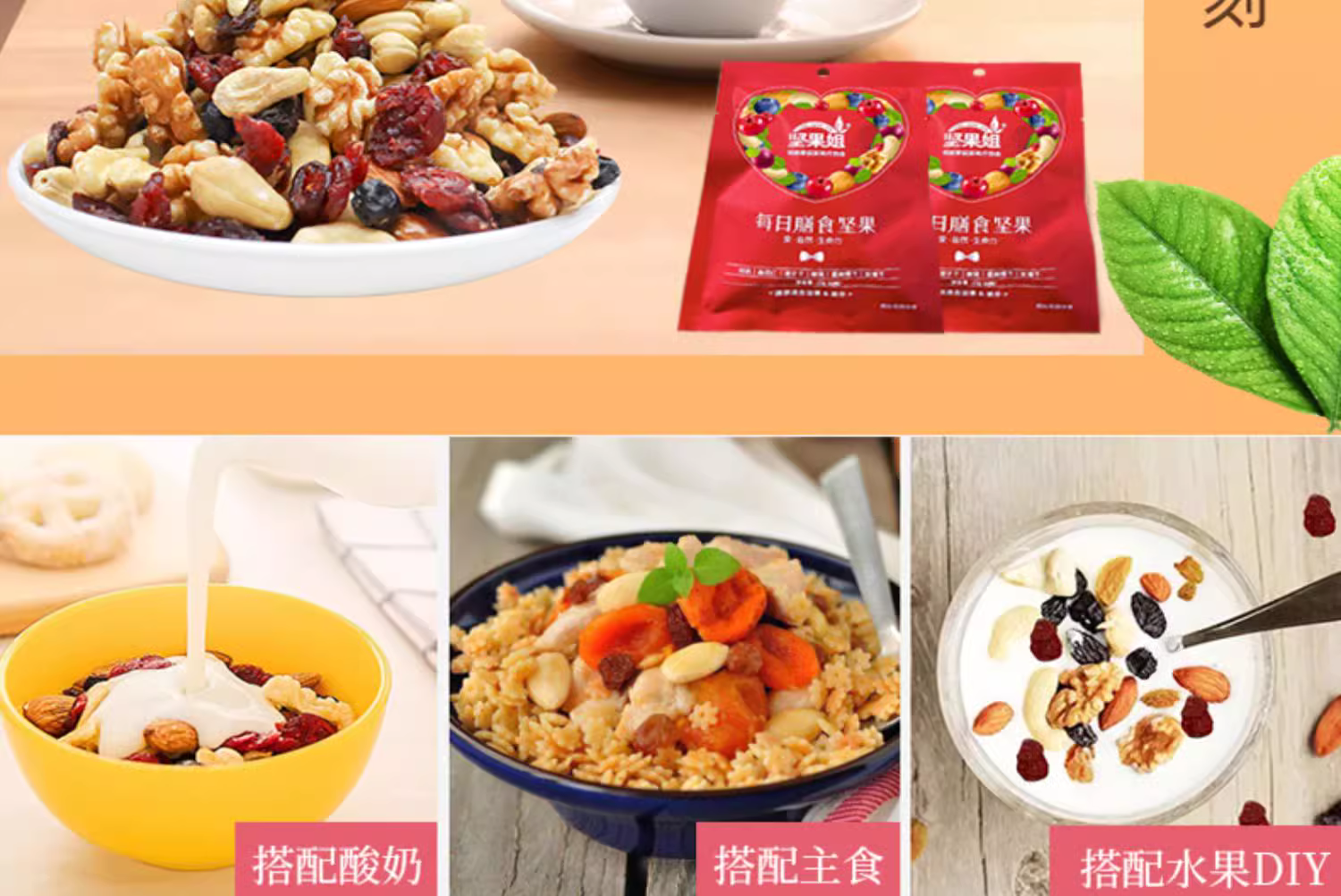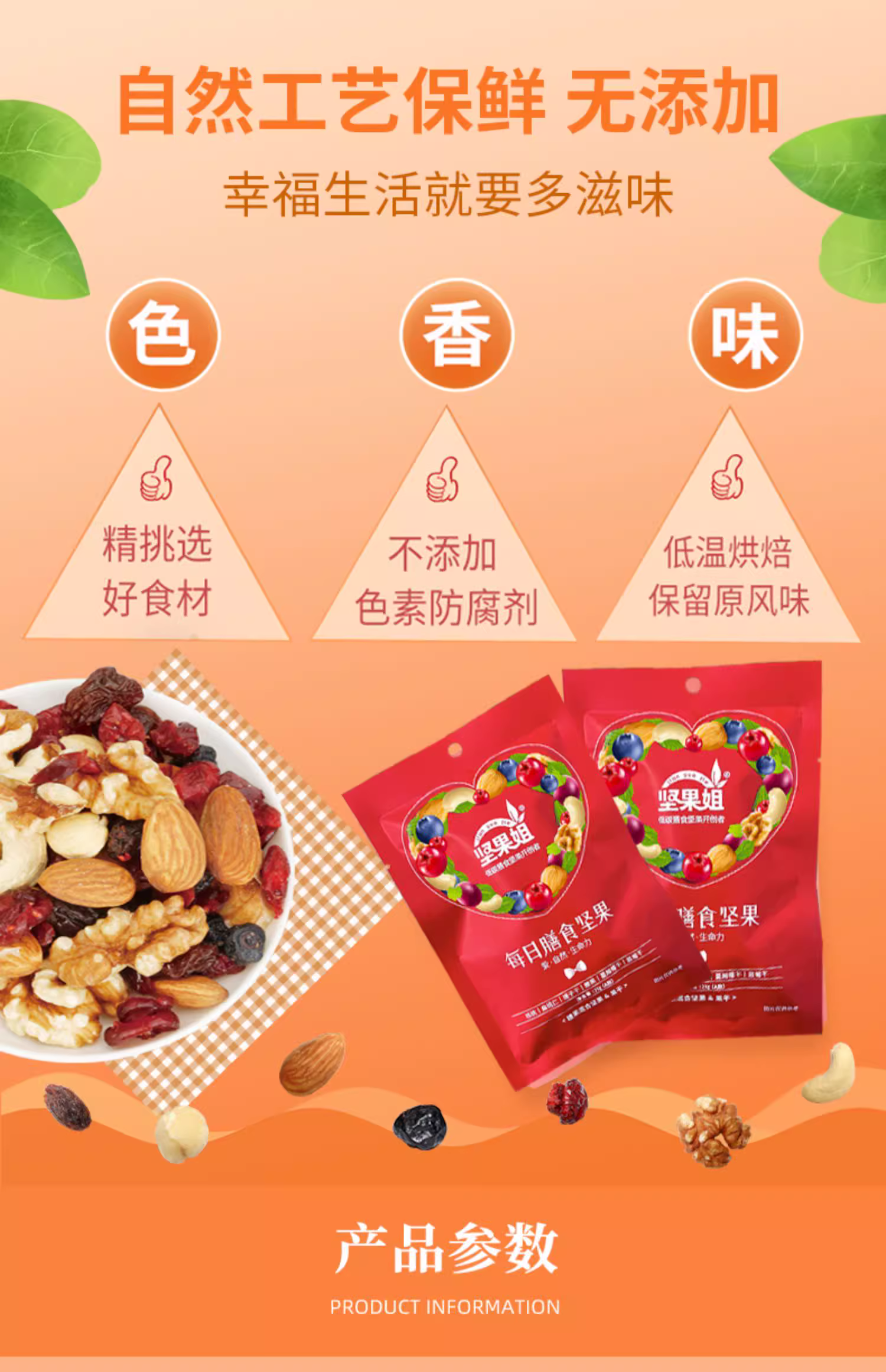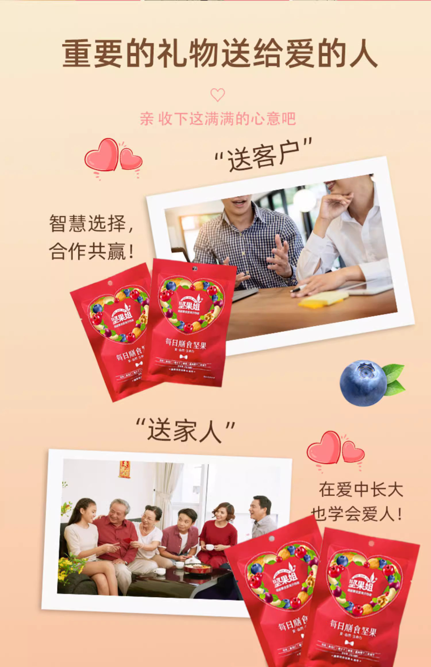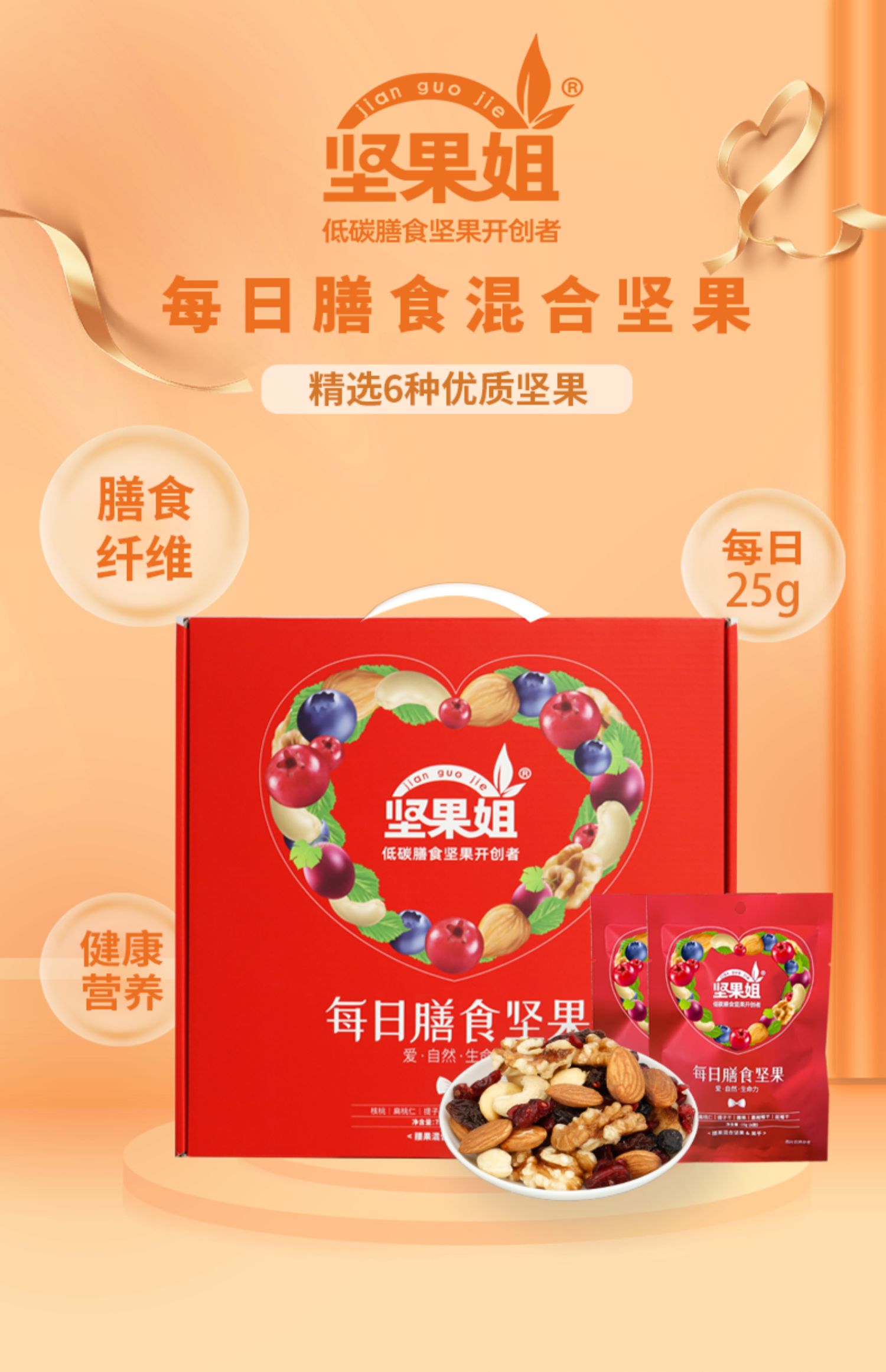 商品名称:坚果每日坚果混合果仁30包装750克儿童零食大礼包干果年货礼盒装 红色