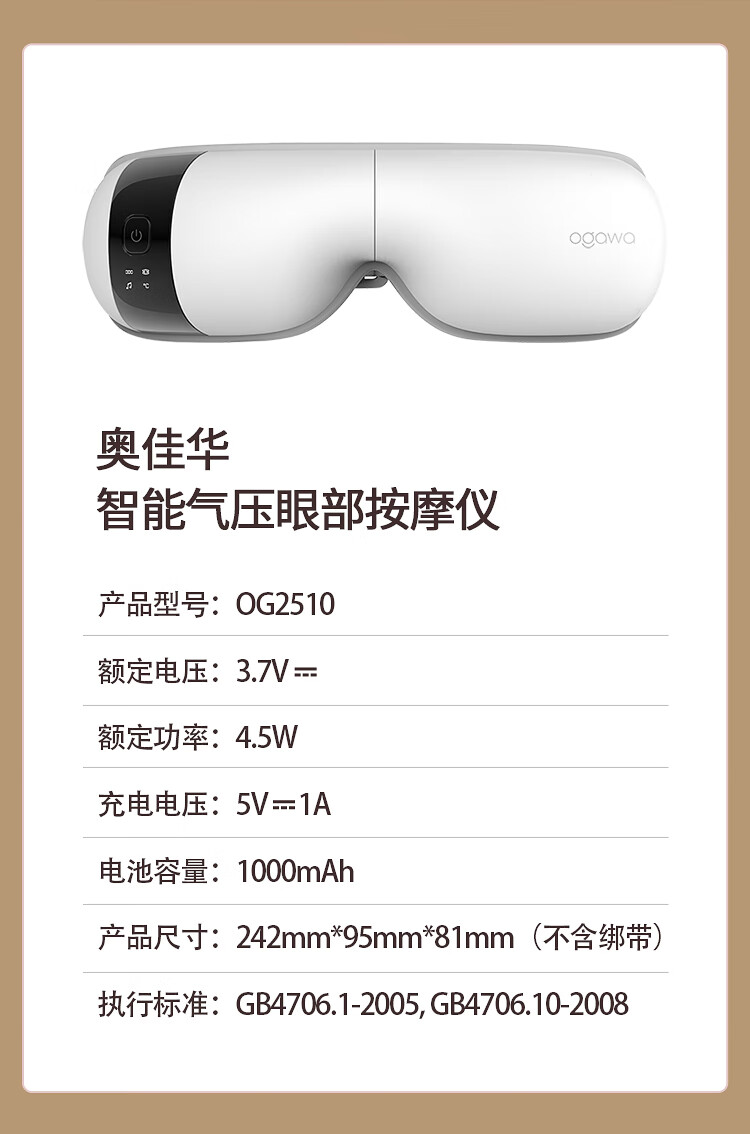 商品名称:奥佳华(OGAWA)可折叠温感热敷支持蓝牙音乐智能护眼仪OG-2510 2510(单位:个) 本白色