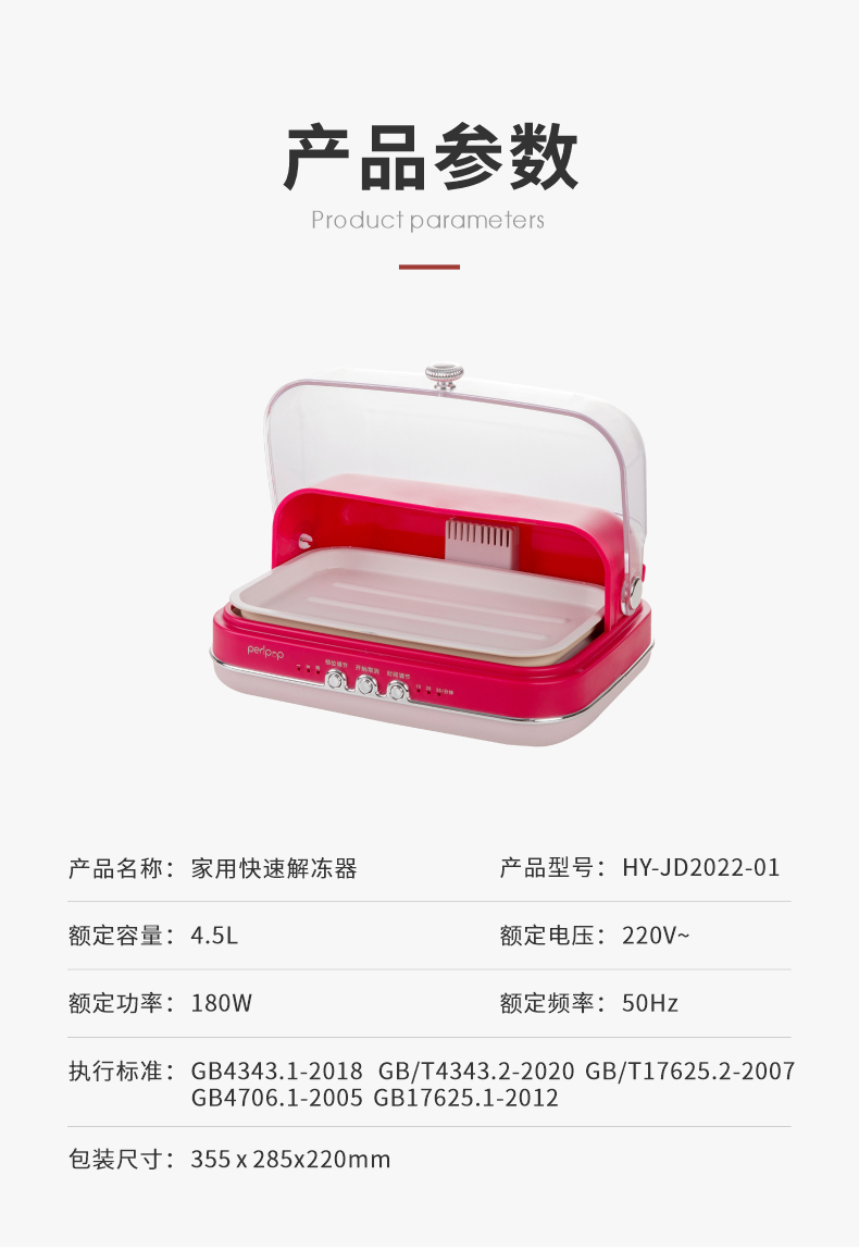 商品名称:peripop高颜值快速解冻盘HY-JD2022-01(单位:个) 粉红色