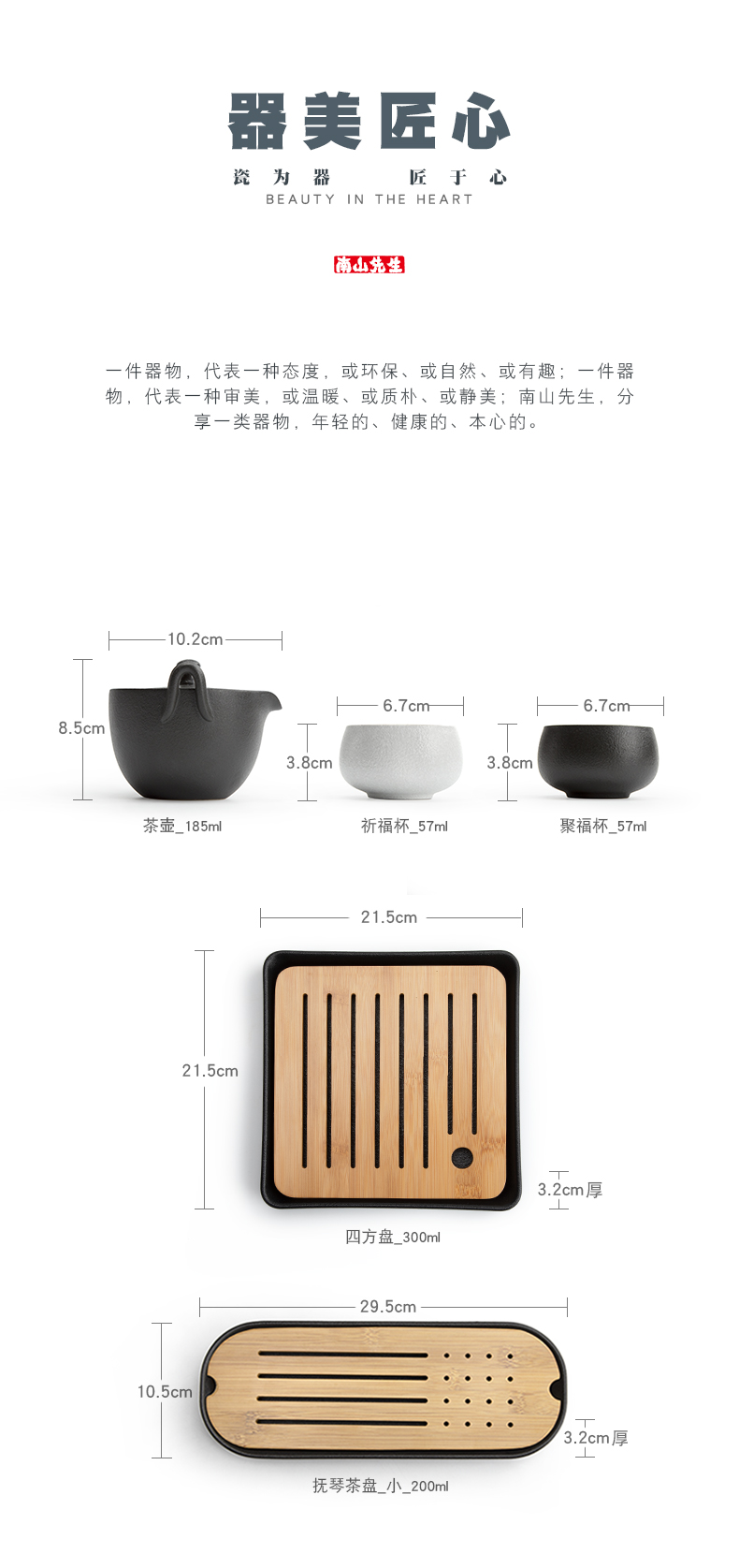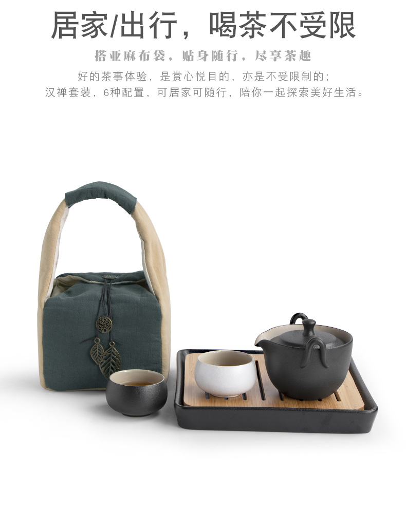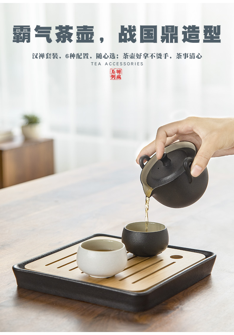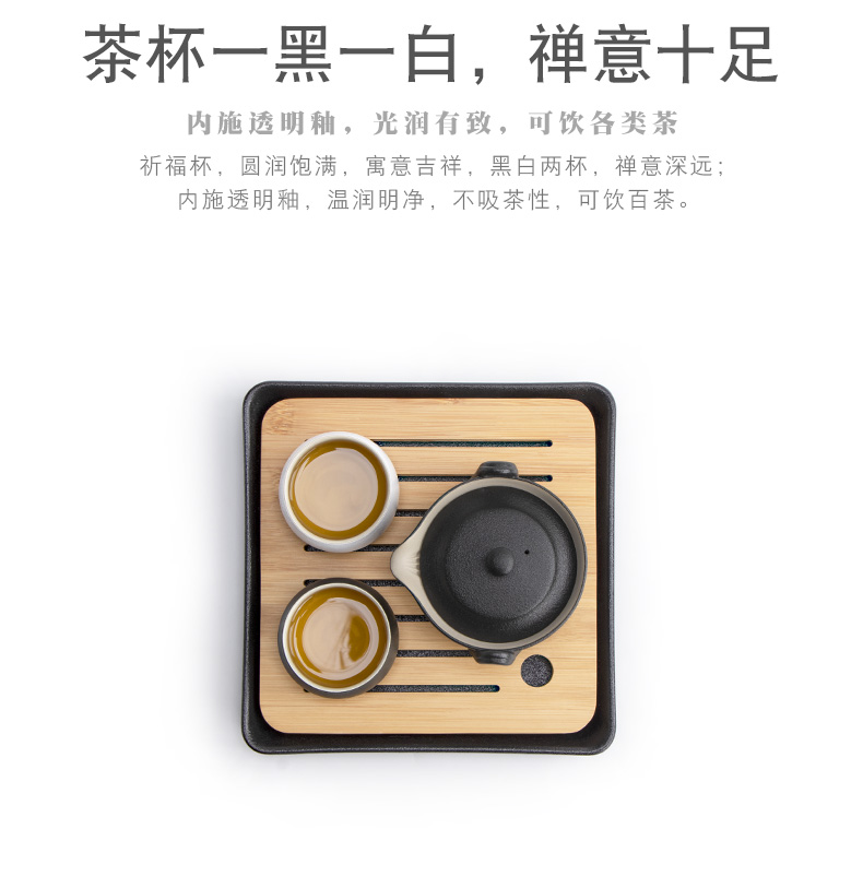 商品名称:南山先生 黑陶快客杯一壶两杯便携式旅行茶具竹制茶盘日式陶瓷功夫茶具 汉禅一壶二杯+茶盘+布袋 套 黑色
