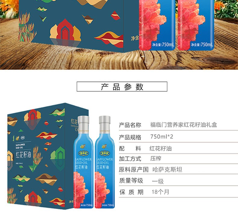商品名称:中粮福临门营养家红花籽油礼盒750ml*2(单位:盒) 蓝色