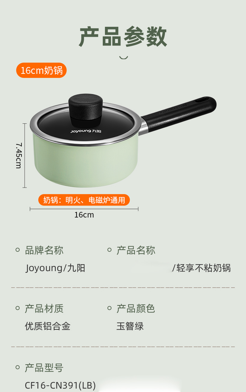商品名称:九阳(Joyoung)CF16-CN391(LB)奶锅泡面锅16cm (单位:台) 清新色