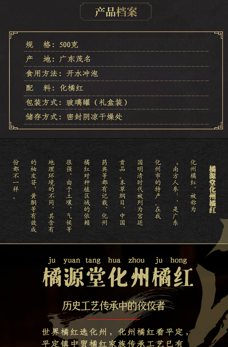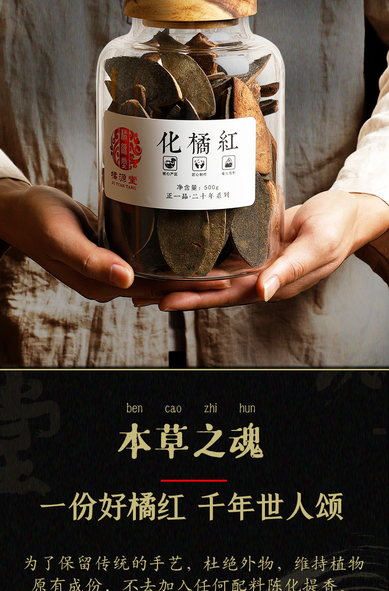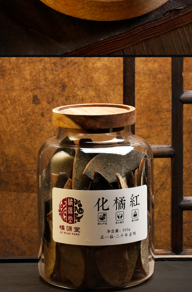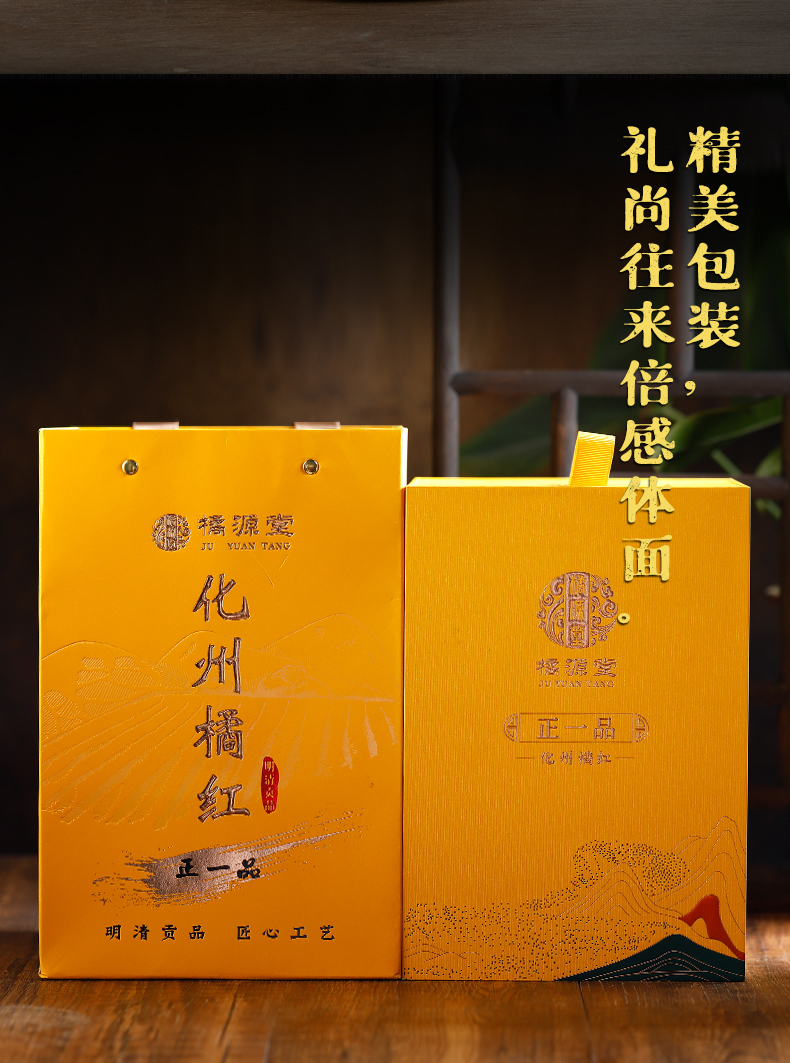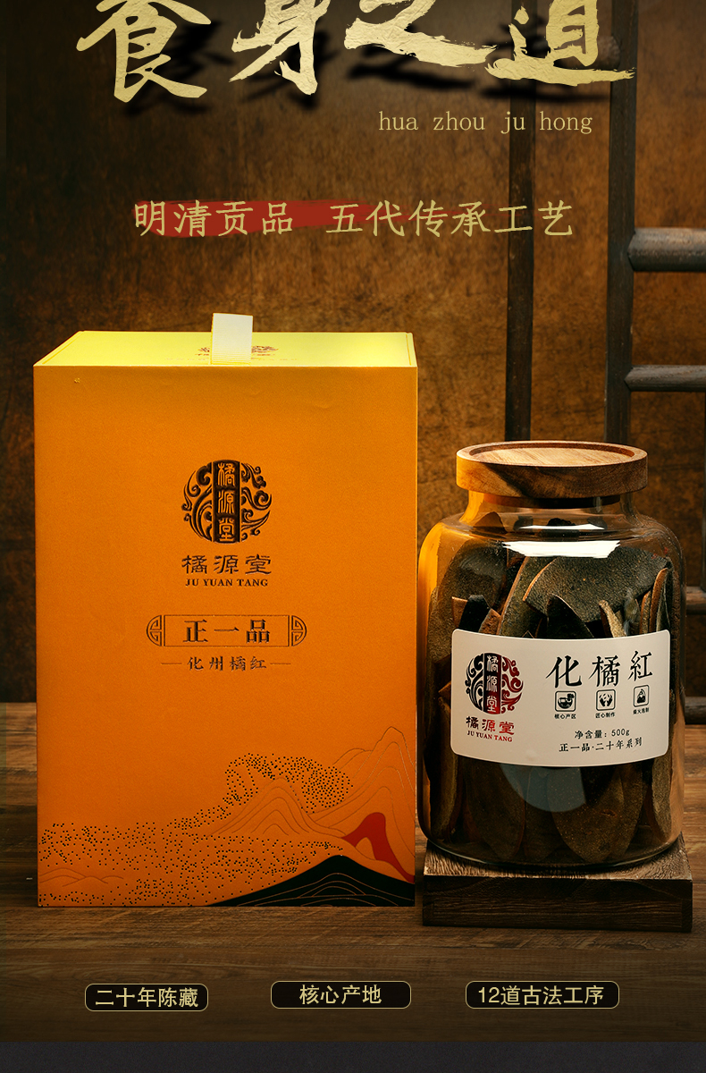 商品名称:橘源堂正一品·二十年系列 化州橘红 500克/罐 黄色