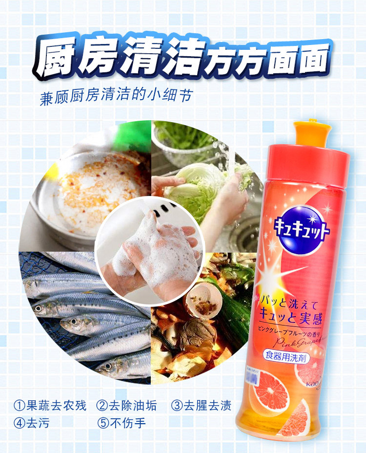 商品名称:花王(KAO)洗碗液餐具果蔬洗洁精 240ml*3支装 (柠檬,西柚,甜橙) 混色