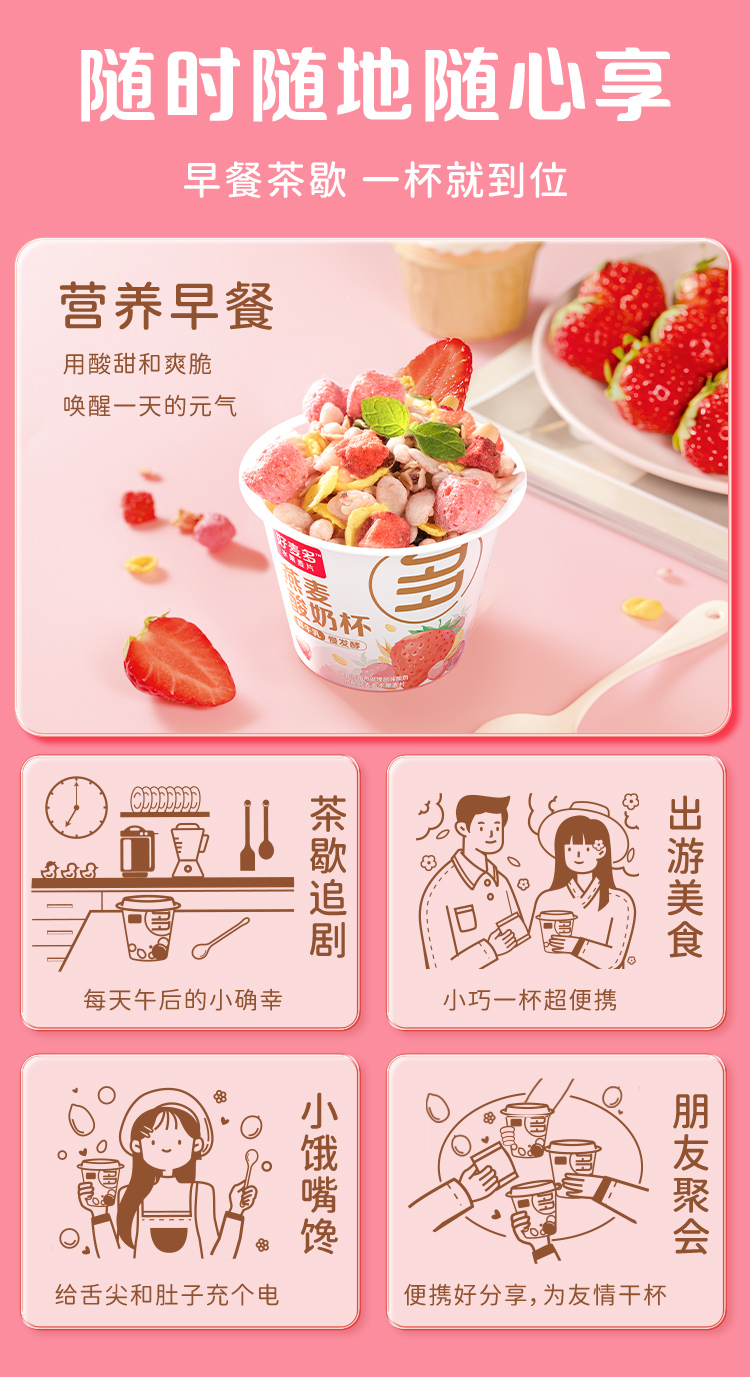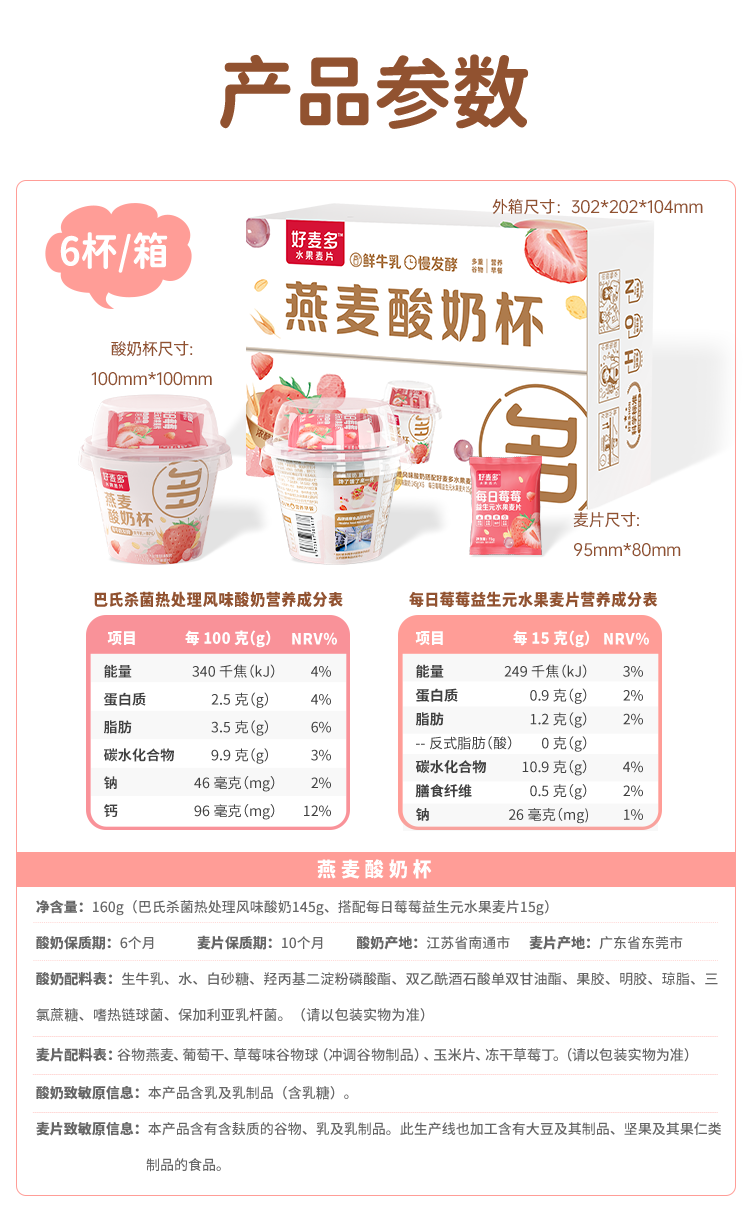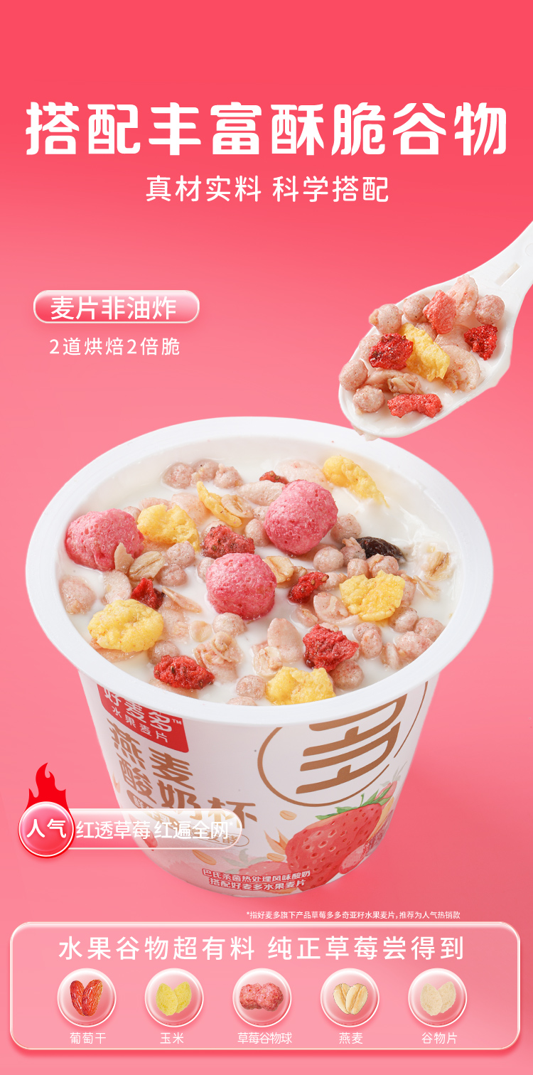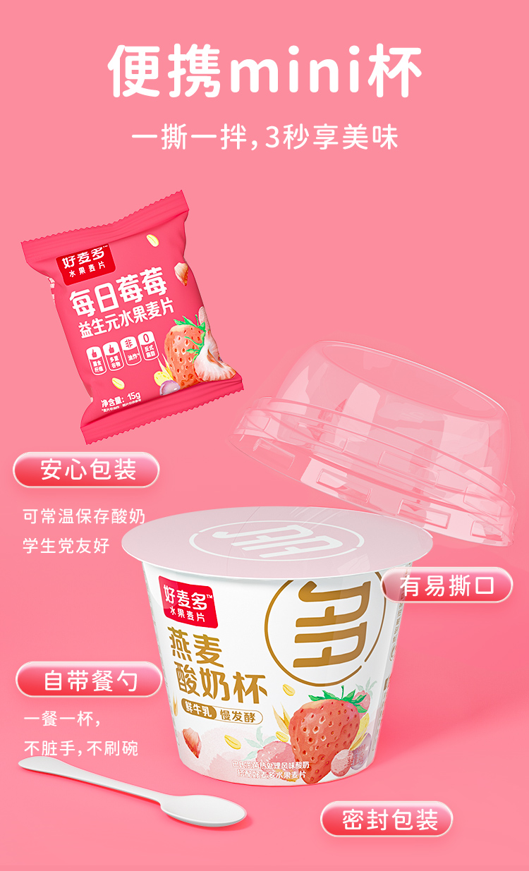 商品名称:好麦多(HONlife) 莓莓燕麦片酸奶杯160g*6杯懒人即食营养早餐(单位:箱) 粉色