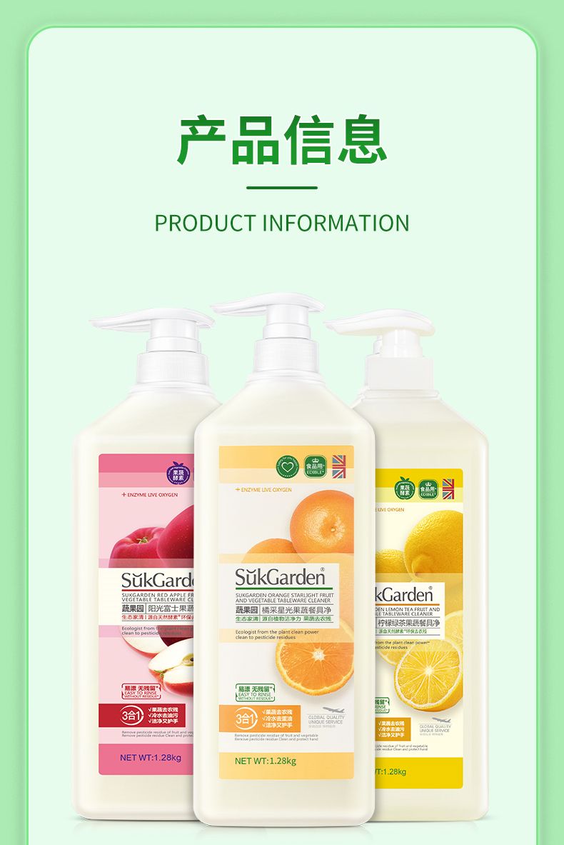 商品名称:SukGarden蔬果园青玉油柑果蔬餐具净 (半透瓶)泵装-1.28kg(单位:瓶) SGY0309