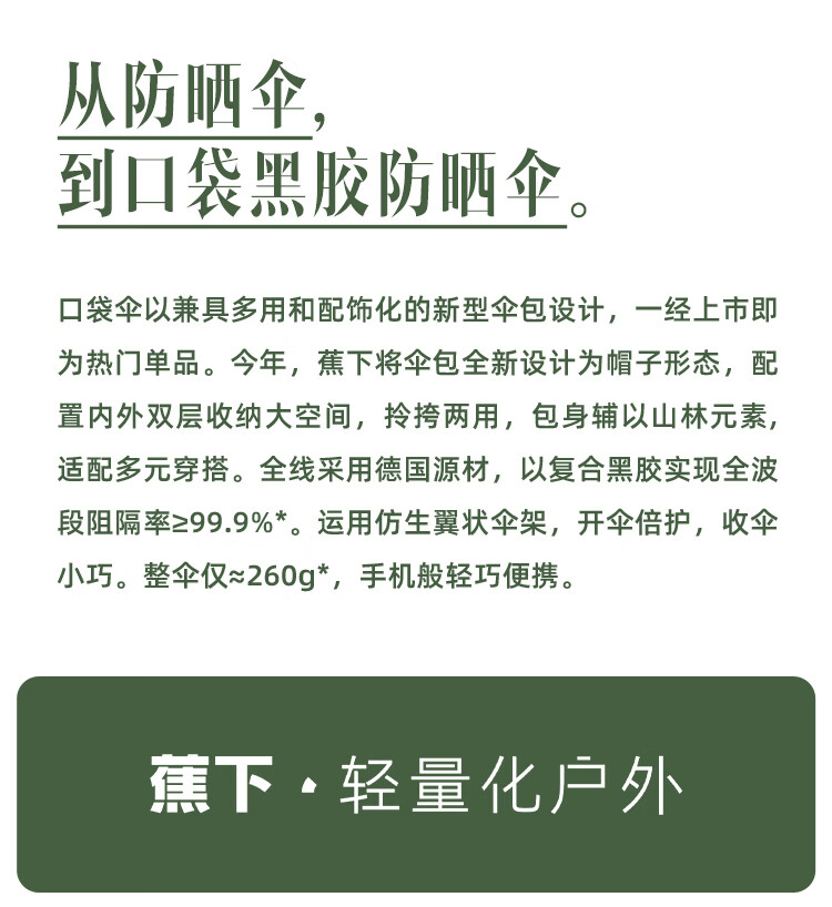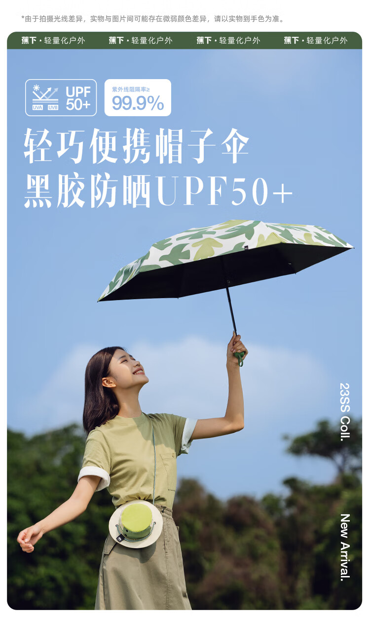 商品名称:蕉下(beneunder)口袋帽野五折太阳伞女遮阳伞折叠防晒晴雨伞帽子伞BM651漠霞(单位:套) 粉色