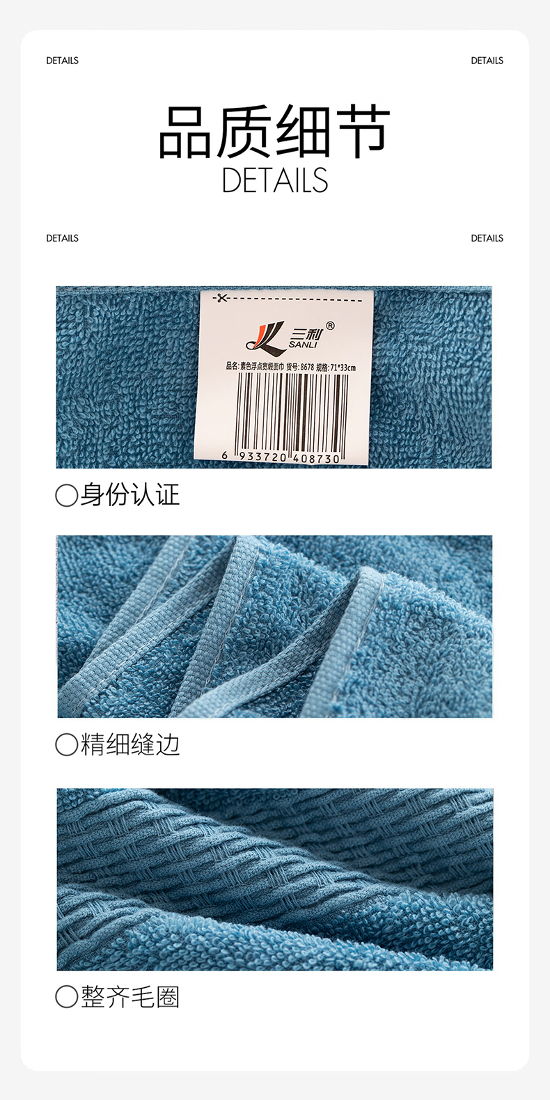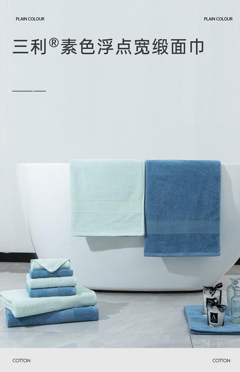 商品名称:三利 纯棉柔软亲肤吸水毛巾 8678 素色浮点宽缎面巾 2条装 混色两条装