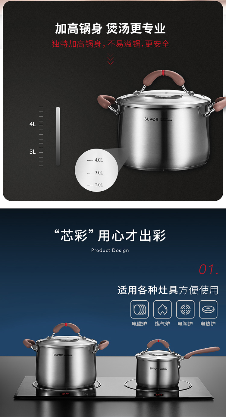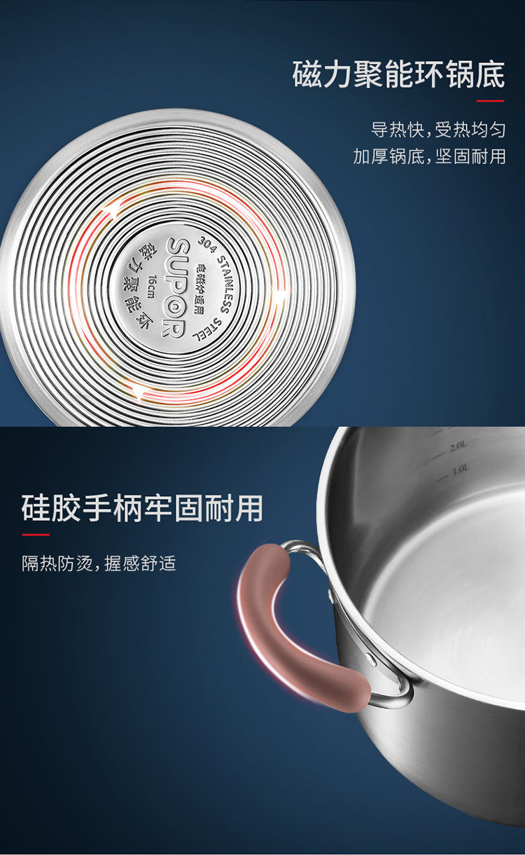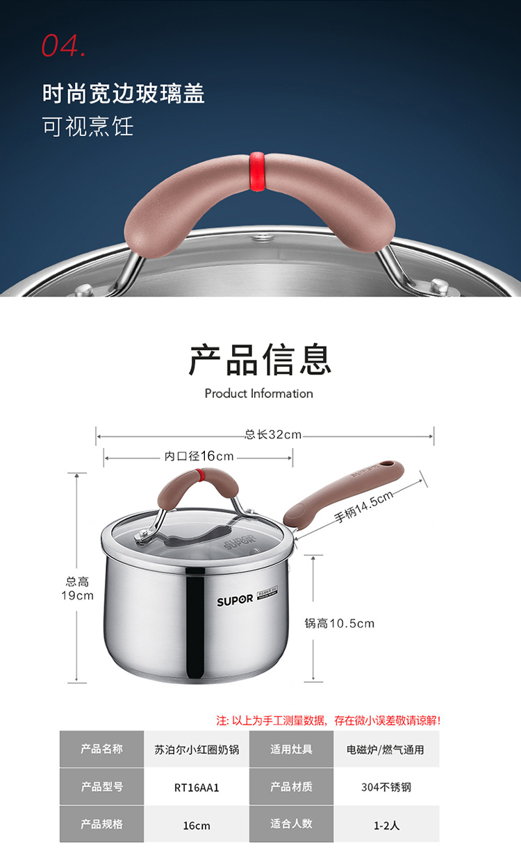 商品名称:苏泊尔小红圈不锈钢奶锅.芯彩系列/RT16AA1(单位:个) 不锈钢色