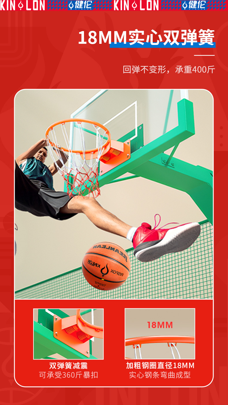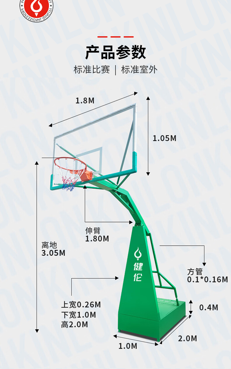 商品名称:健伦(JEEANLEAN)JL-2156S篮球架 标准成人户外移动平箱篮球架(包安装含防撞套) 雾雨绿