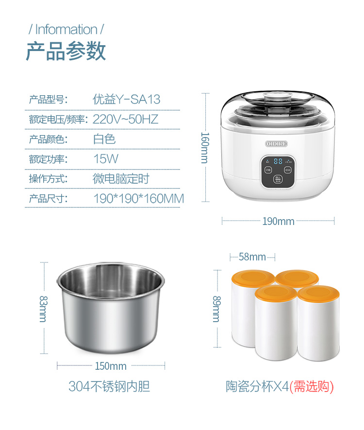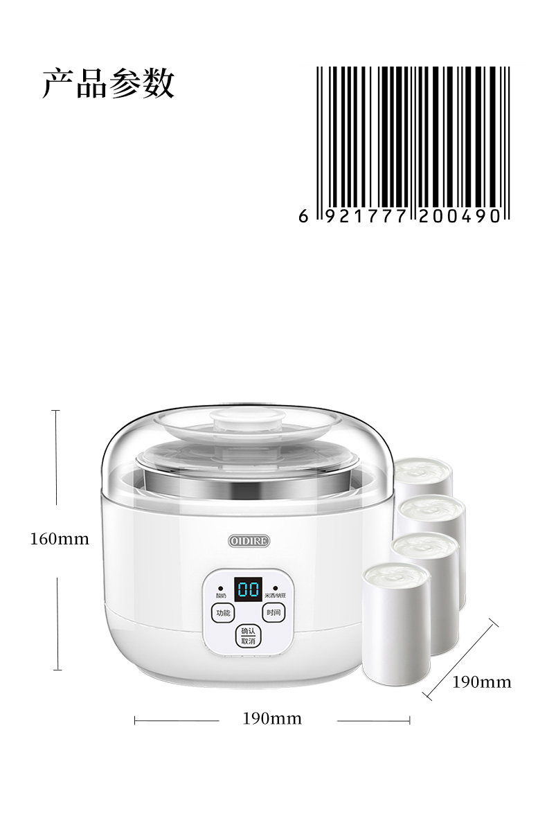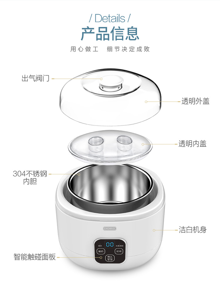商品名称:OIDIRE全自动家用酸奶机ODI-SA13不锈钢内胆可定时(单位:台) 白色