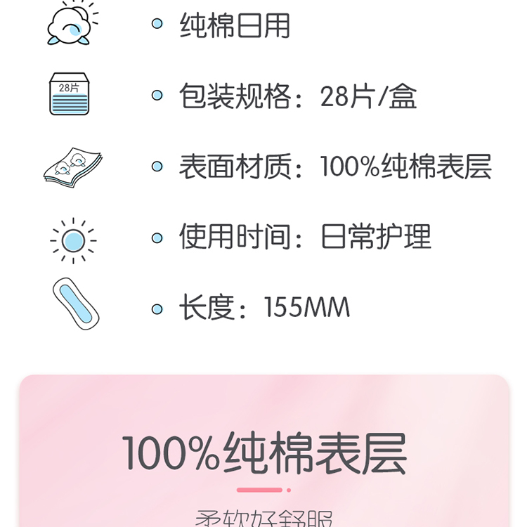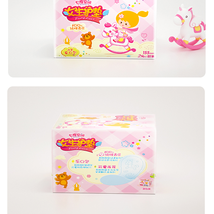 商品名称:七度空间(SPACE7) 少女 女生护垫 纯棉表层超薄乐Q包155mm*28片 白色