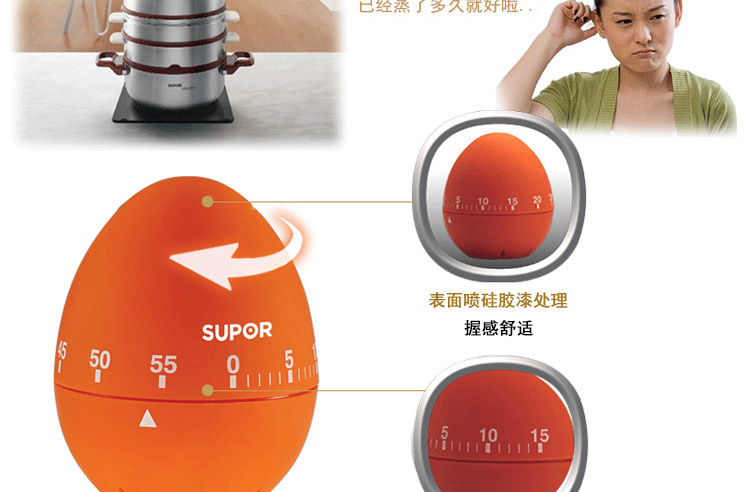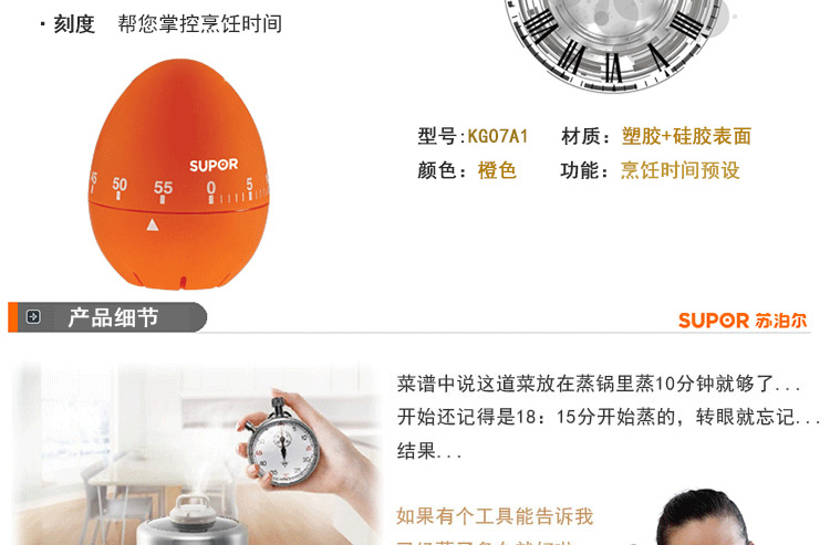 商品名称:苏泊尔厨房用品小工具苏泊尔银悦厨房手动定时器提醒器小巧计时器 橙色