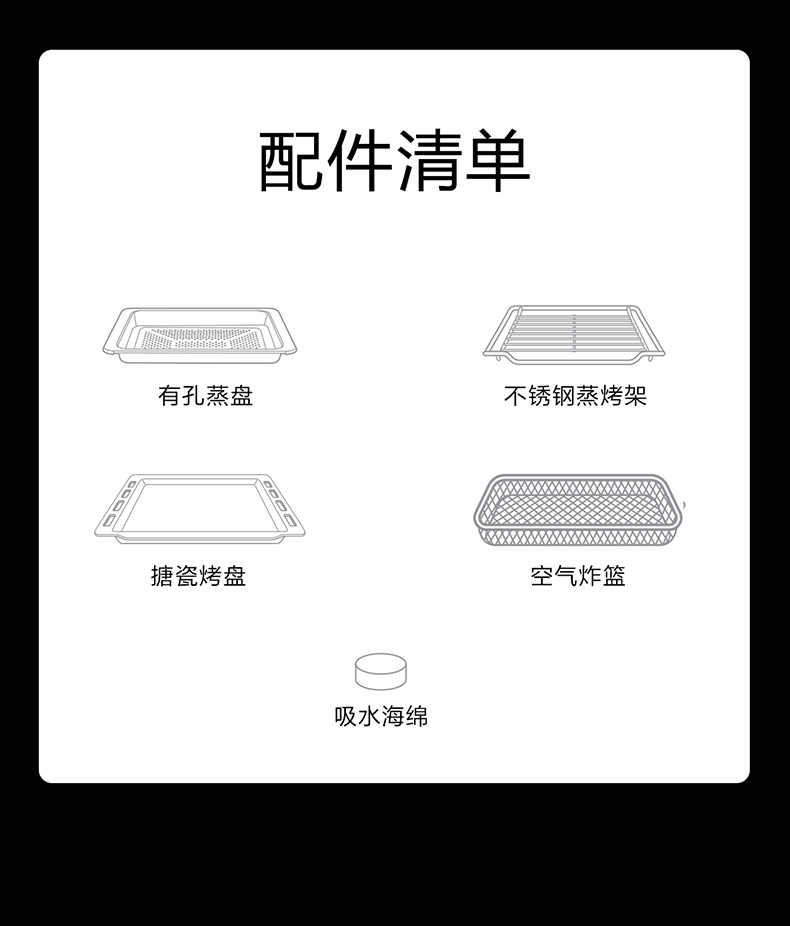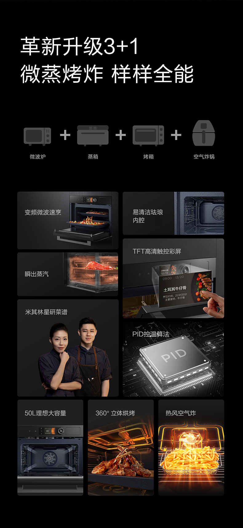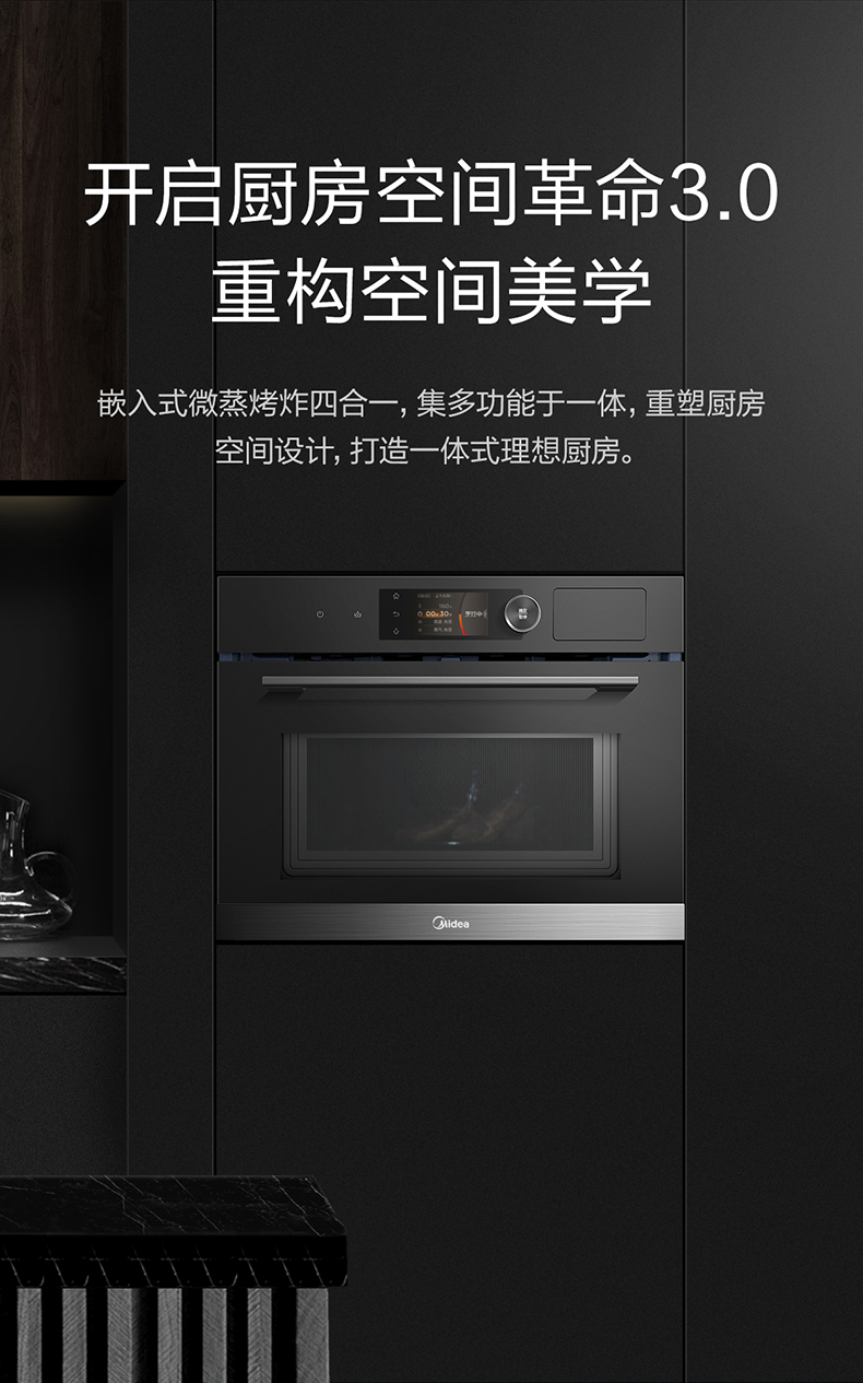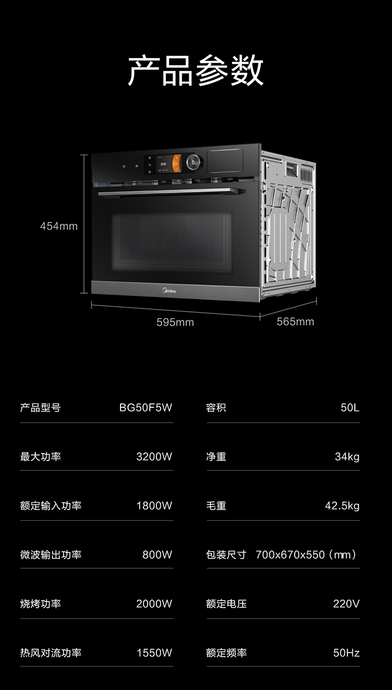商品名称:美的(Midea)BG50F5W嵌入式微蒸烤炸一体机炉箱锅四合一彩屏智能定时预约搪瓷内胆多功能家用 曜石黑