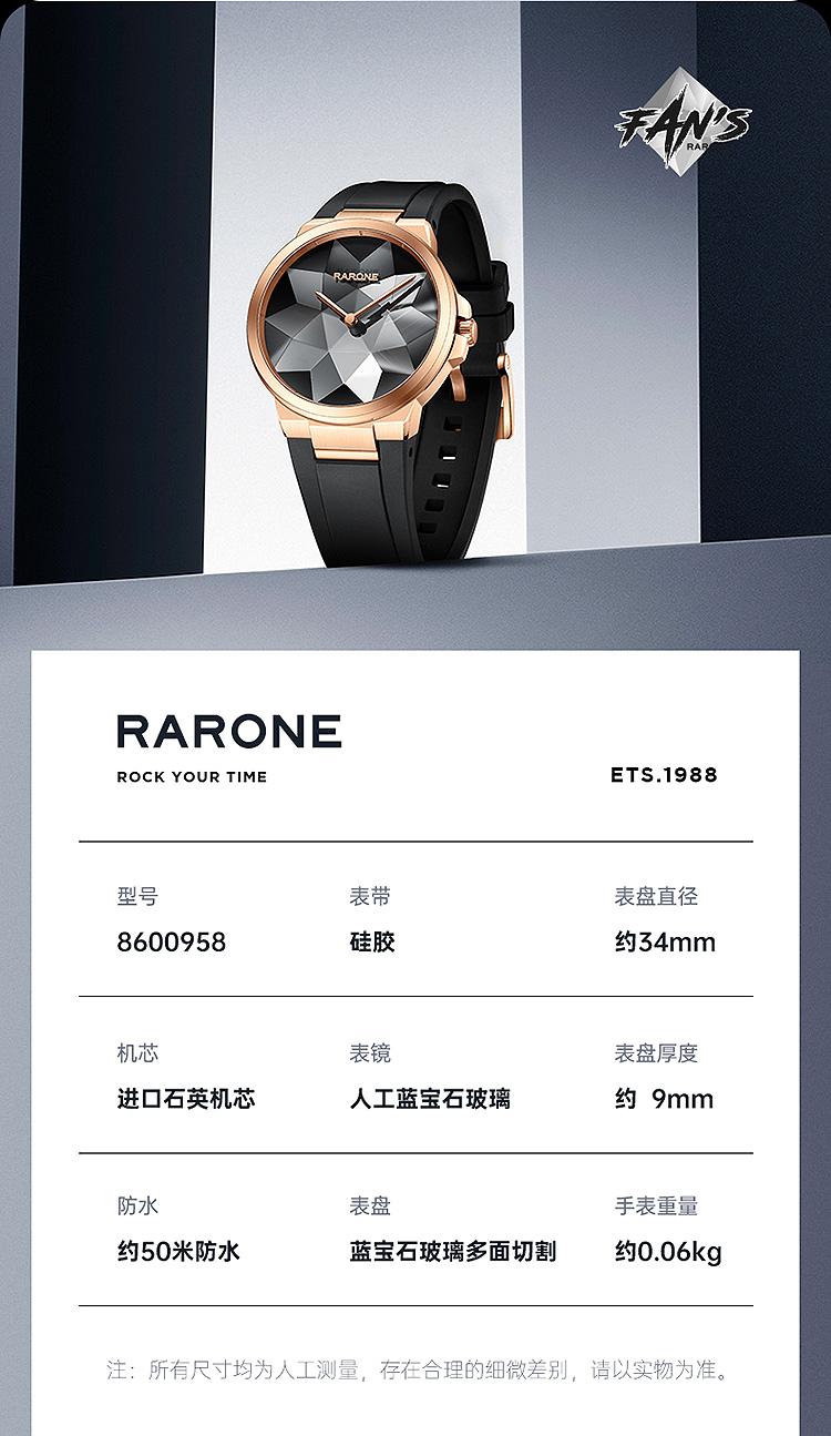 商品名称:雷诺(RARONE)手表时尚女士手表批花表盘石英女表防水腕表8600958(单位:块) 黑色