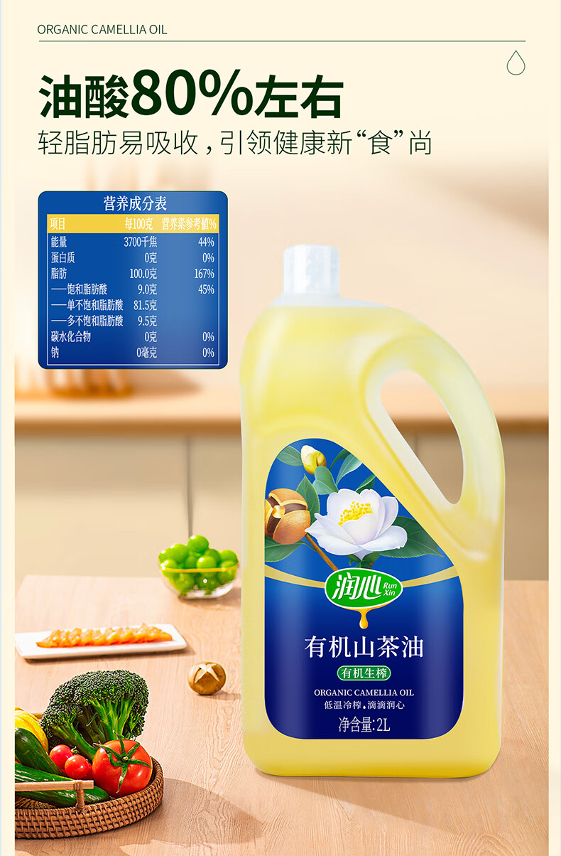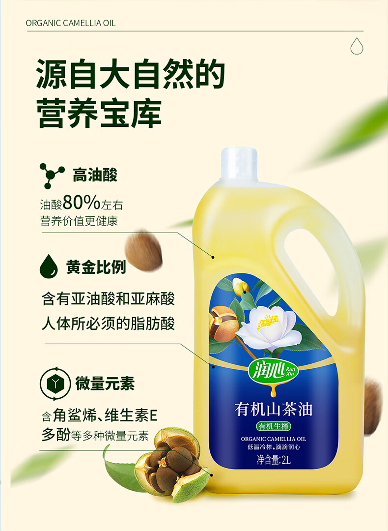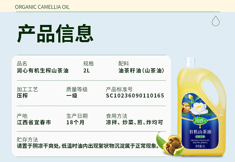 商品名称:润心有机生榨山茶油2L(单位:瓶) 黄色