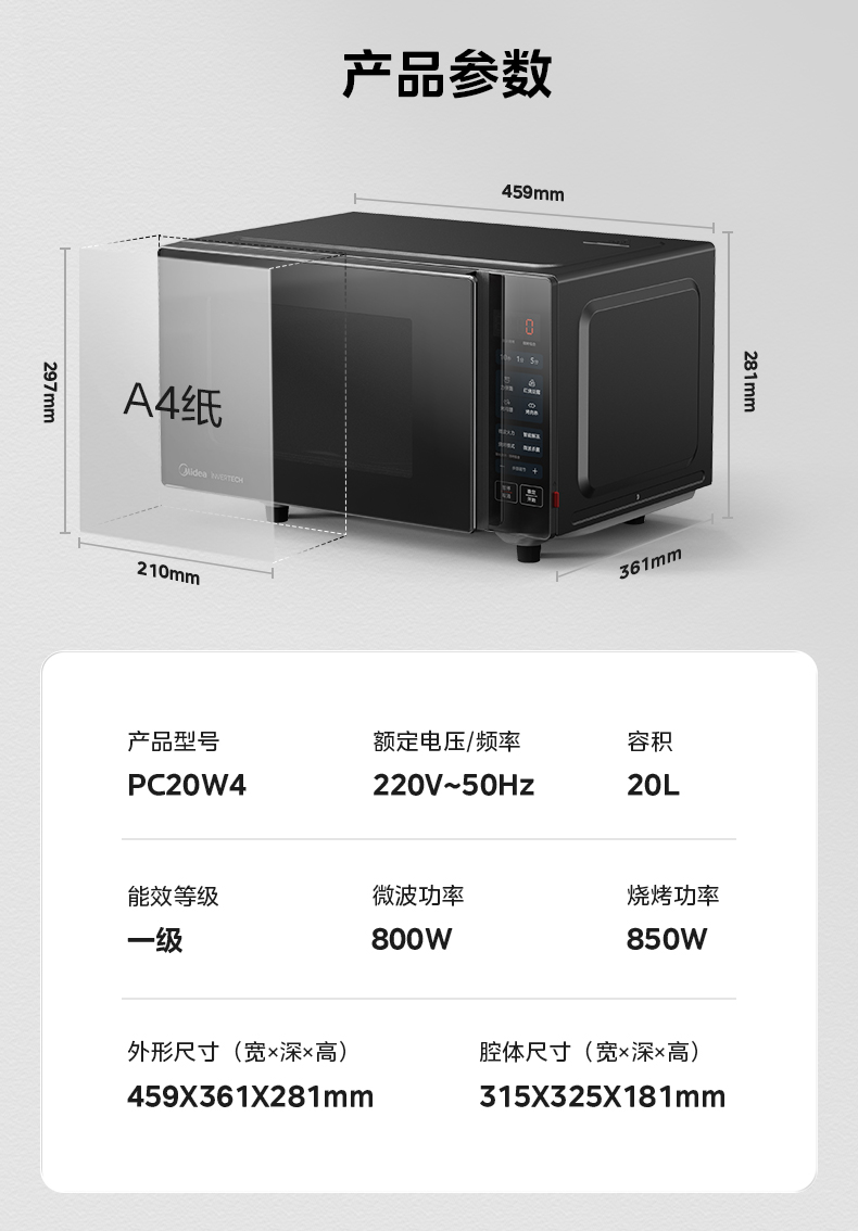 商品名称:美的(Midea)微波炉微烤炉 20L容量 PC20W4(单位:台) 黑色