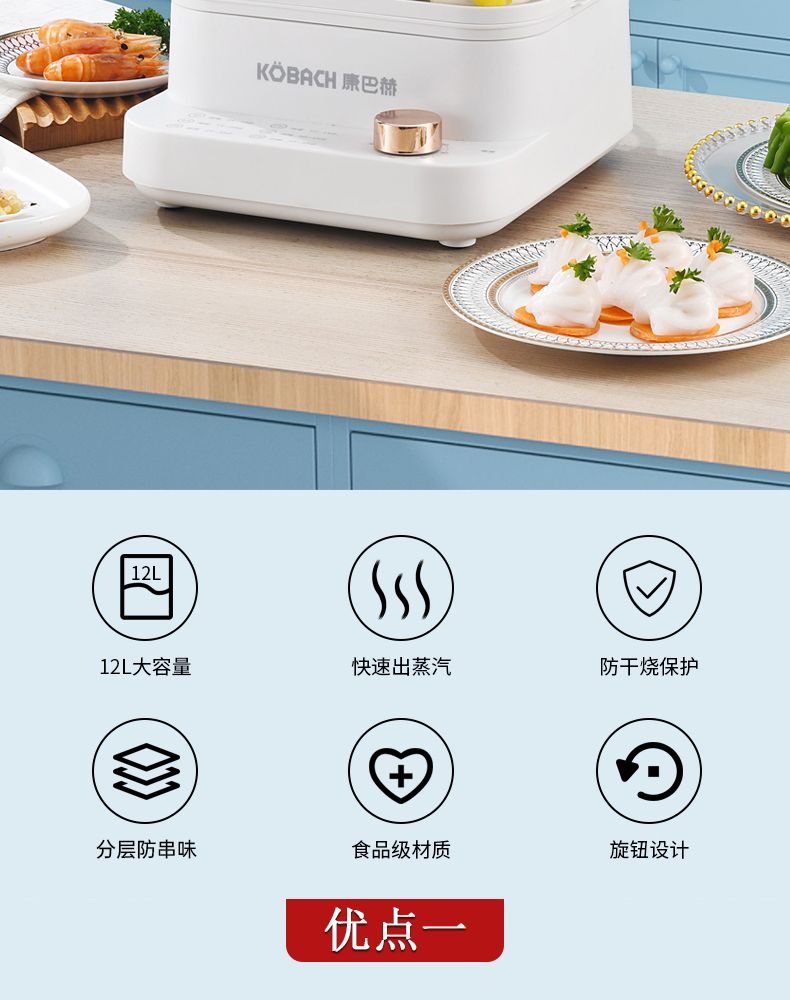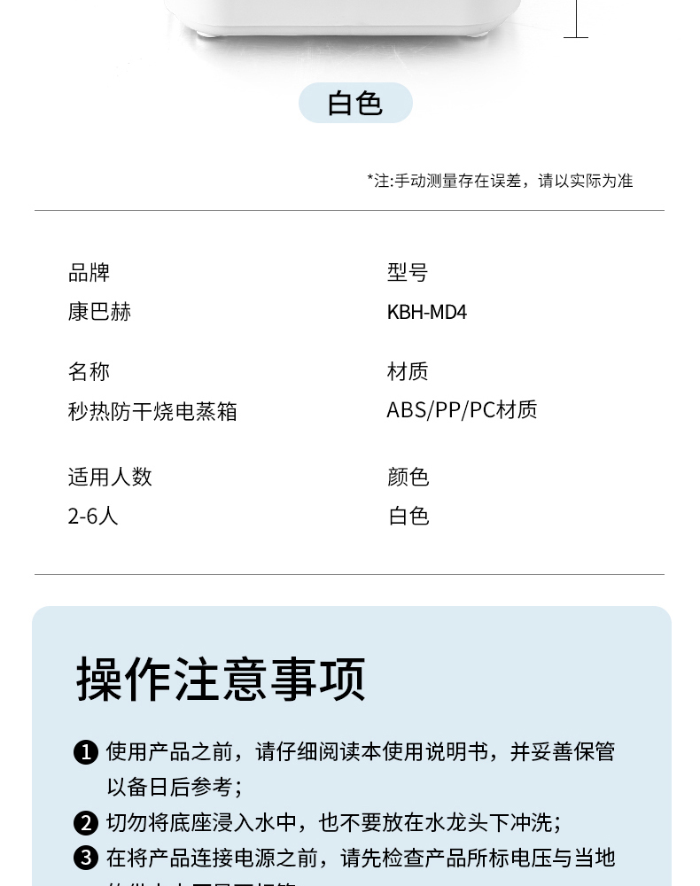 商品名称:康巴赫秒热防干烧电蒸箱 KBH-MD4W【14060117】(单位:个) 白色