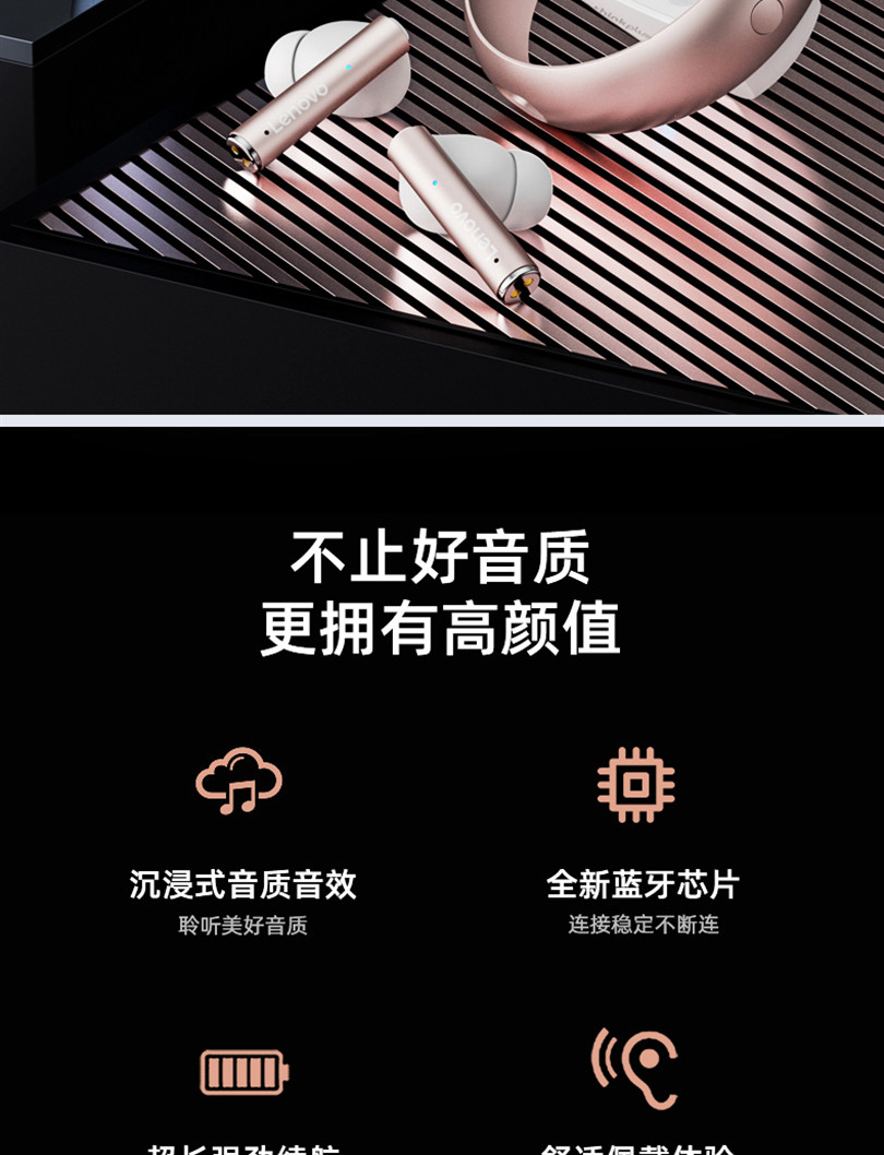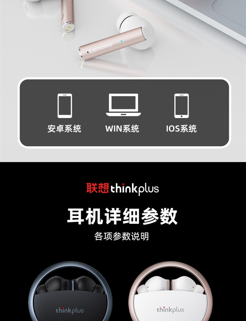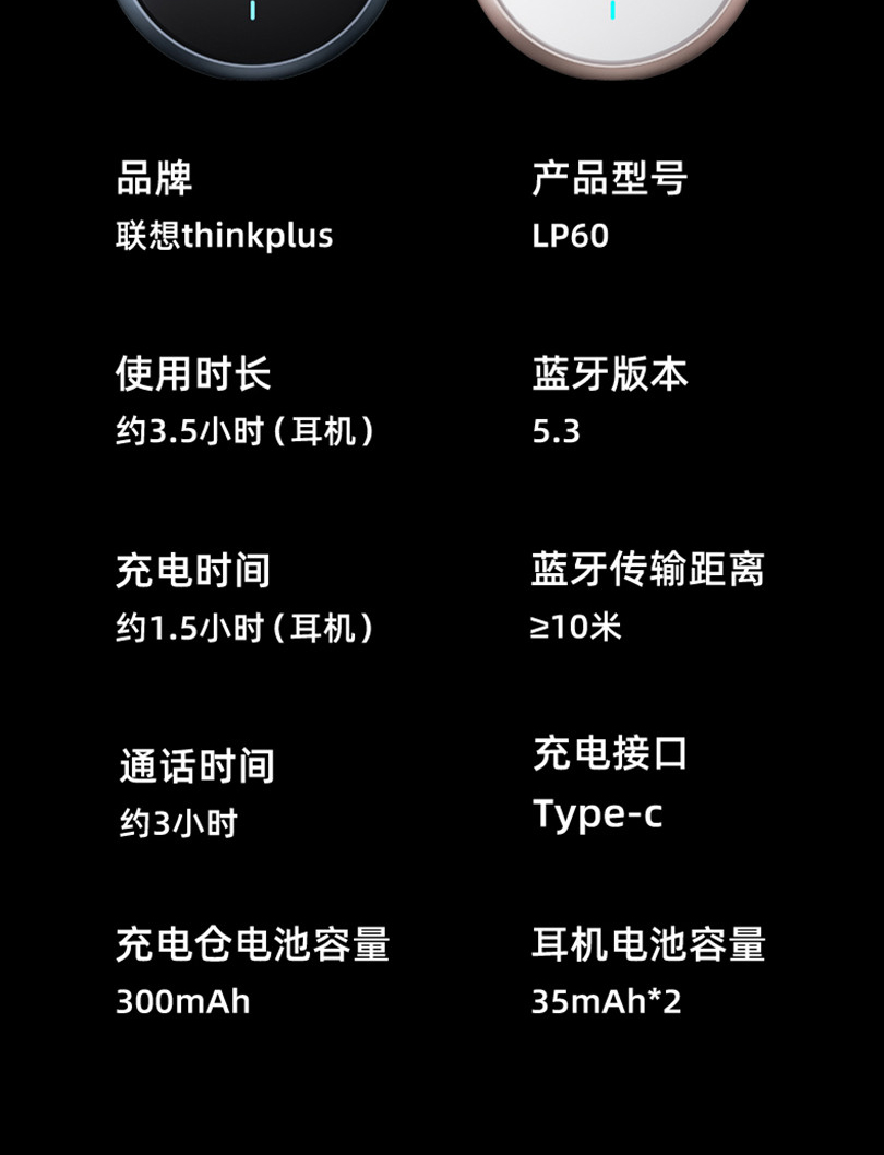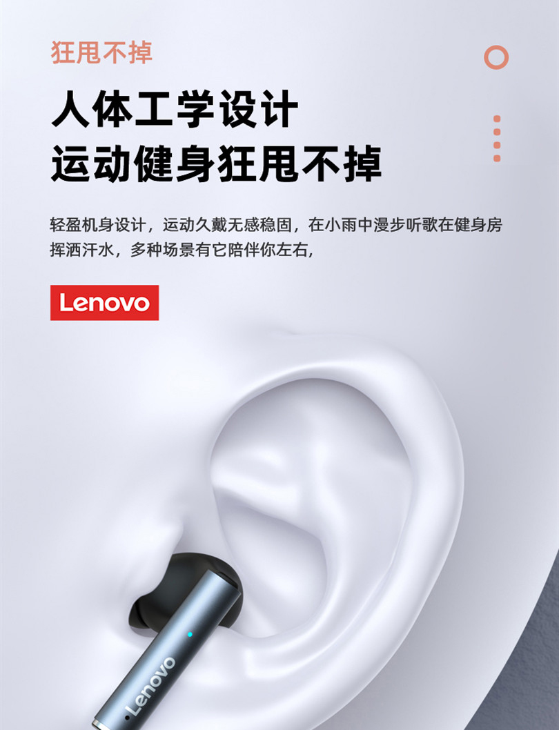 商品名称:联想(Lenovo)LP60 真无线蓝牙耳机 入耳式跑步运动降噪游戏耳机单位:个 黑色
