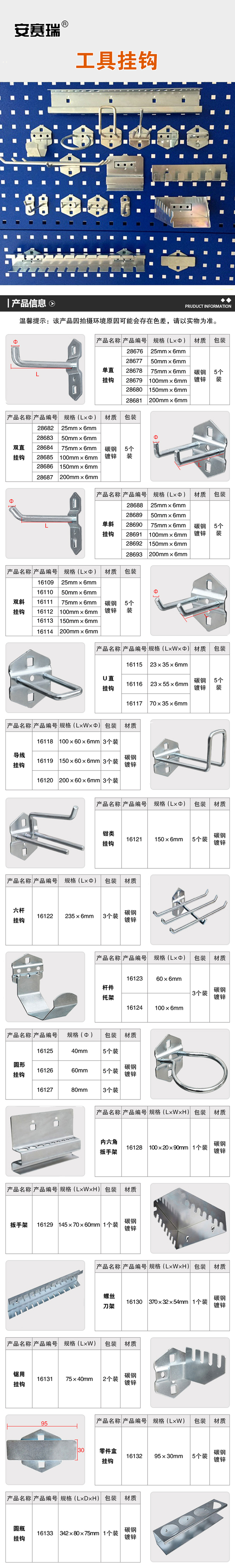 商品名称:安赛瑞 双直挂钩5个装挂板挂钩 方孔洞洞板物料货架挂钩 墙板挂钩 双直钩25mm 28682 个 不锈钢色