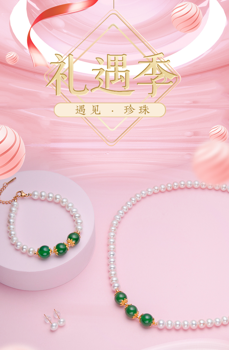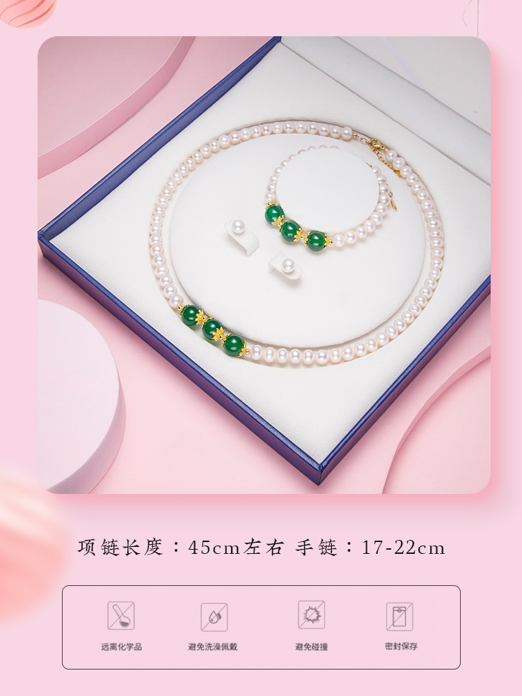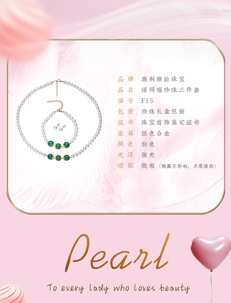 商品名称:法国奥利维拉绿玛瑙珍珠三件套F15 白色