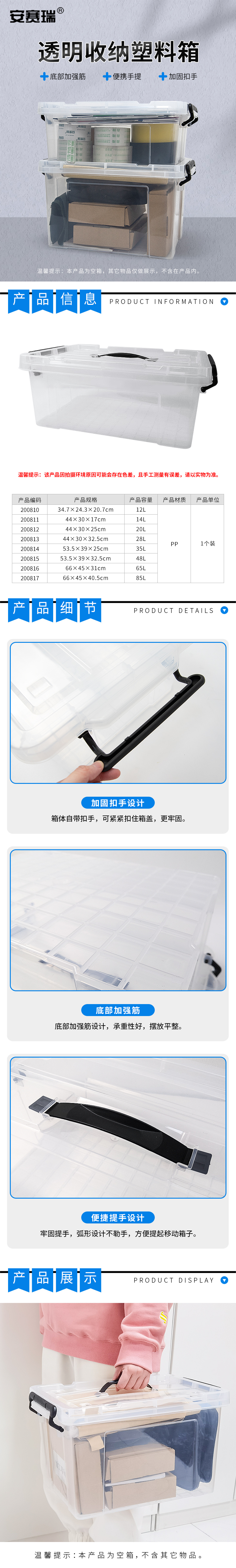 商品名称:安赛瑞 透明收纳箱 手提塑料储物盒车载衣物书籍整理箱 12L 1个装 透明 200810 个 无色