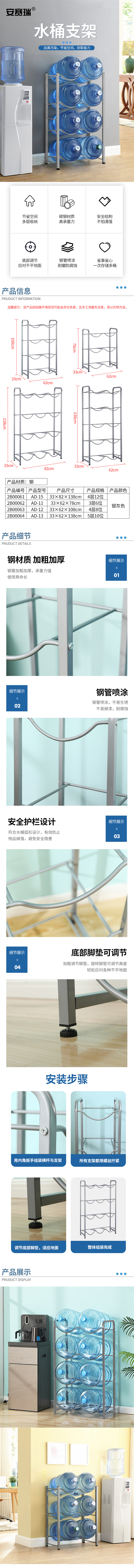 商品名称:安赛瑞 饮水桶放置架 公司办公室仓库桶装水收纳矿泉水储物支架 银灰5层10桶 2B00064 个 银色