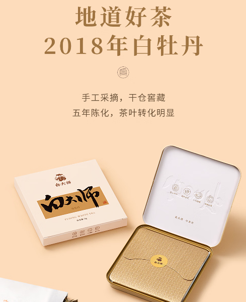 商品名称:白大师茶叶2018年特级白牡丹刚刚好小方片5g盒装 米白色