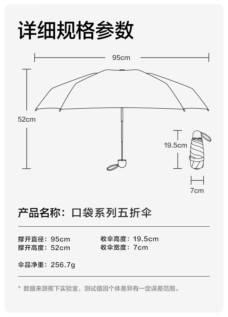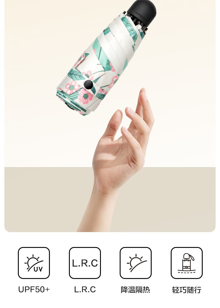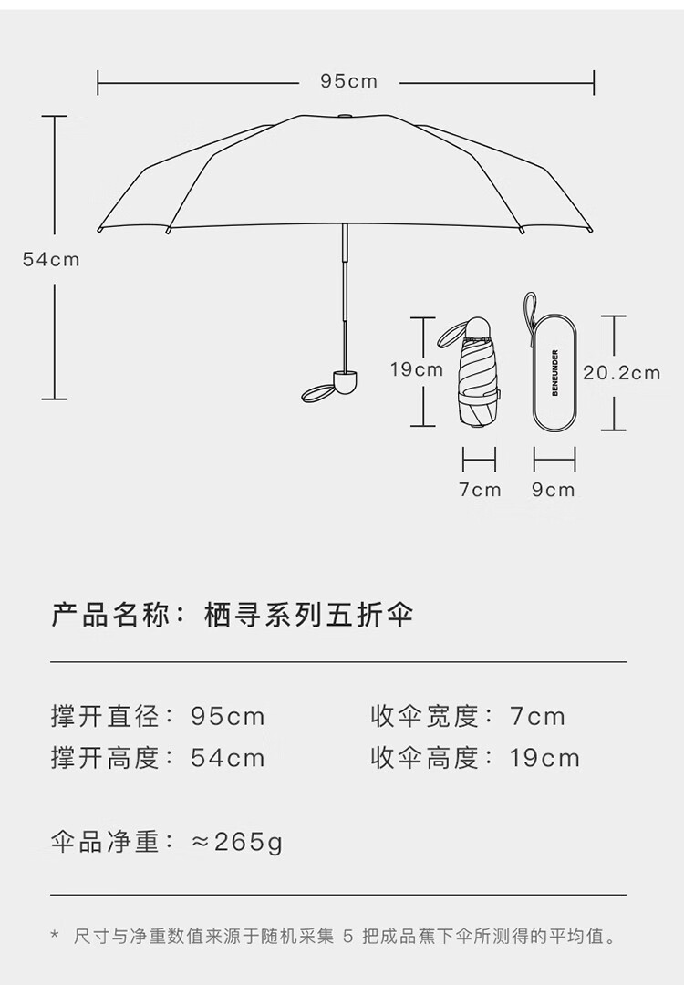 商品名称:蕉下(beneunder) 太阳伞防晒防紫外线遮阳伞女士雨伞户外晴雨两用伞口袋系列五折-绾青(单位:把) 混色