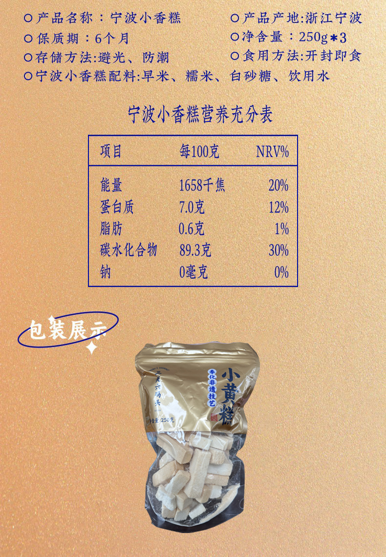 商品名称:三关六码头小香糕250g*3(单位:组)