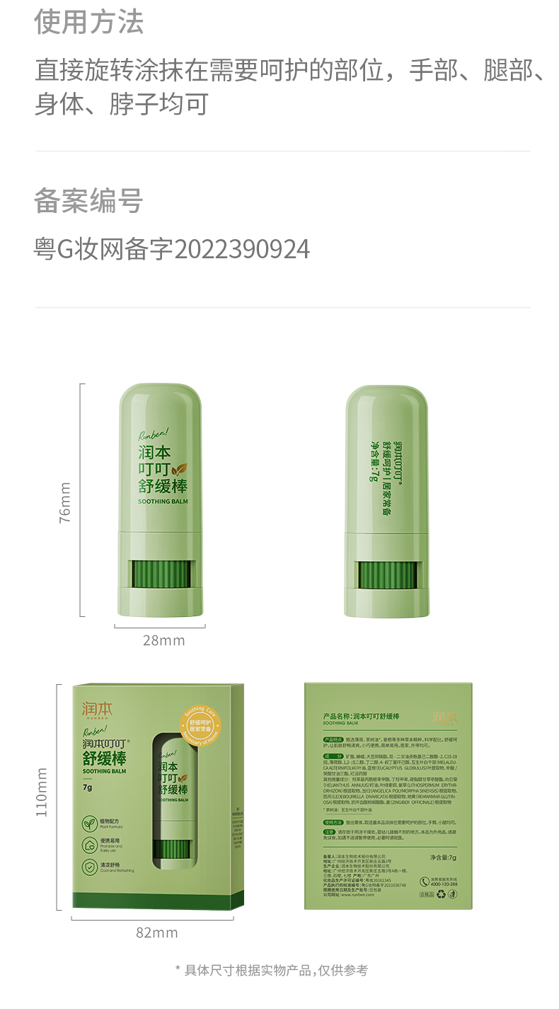商品名称:润本叮叮舒缓棒(经典款)7g(单位:盒) 绿色