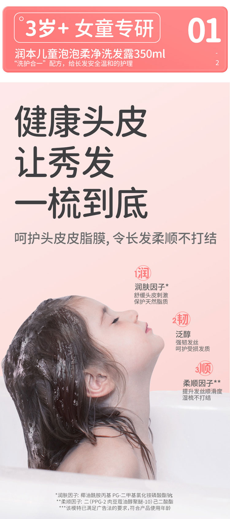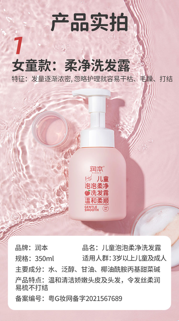 商品名称:润本儿童泡泡柔净洗发露350ml(单位:盒) 粉色