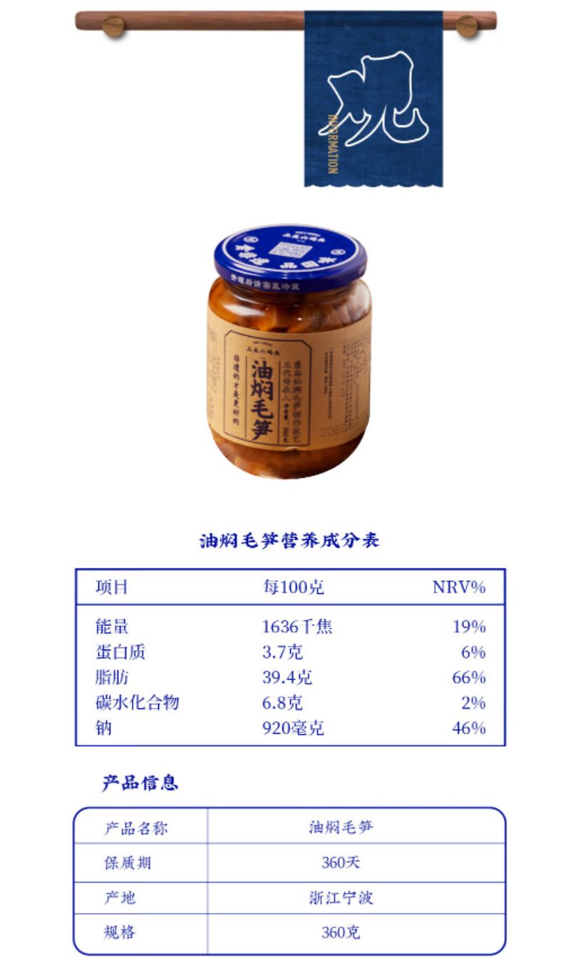 商品名称:三关六码头奉化油焖毛笋罐头360g*2(单位:组) 蓝色