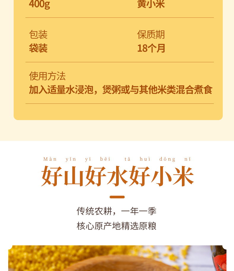 商品名称:土极啦黄小米400g朝阳特产营养早餐粥米(单位:包) 无色