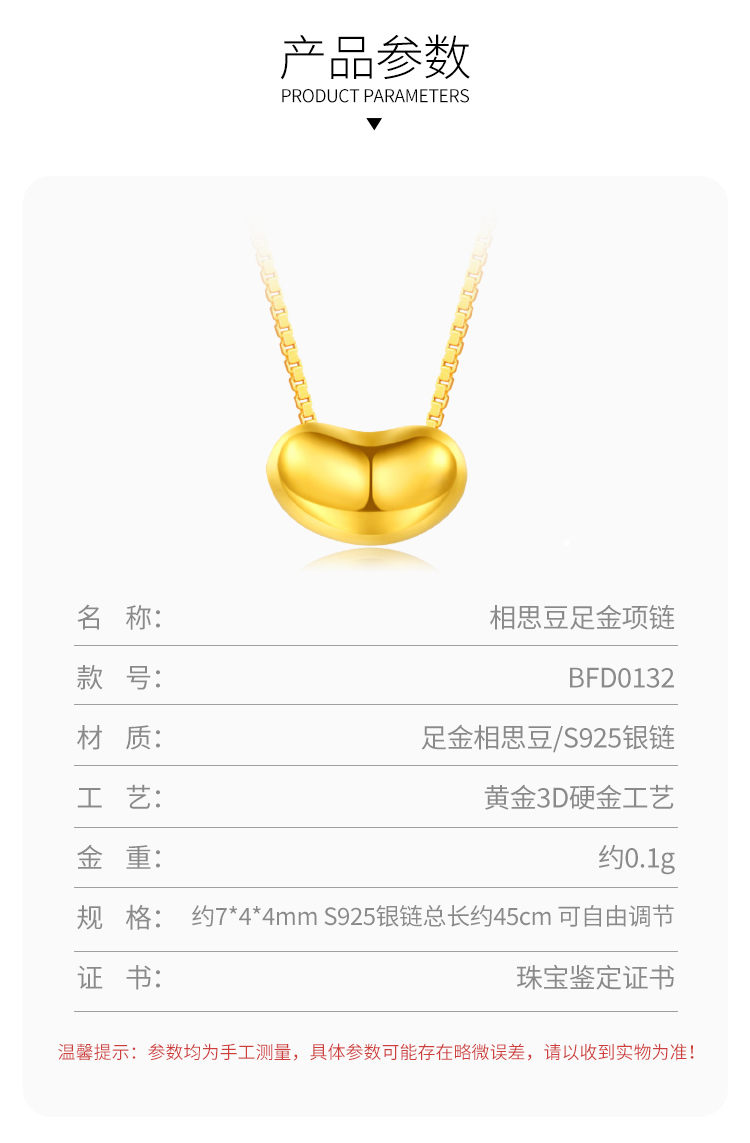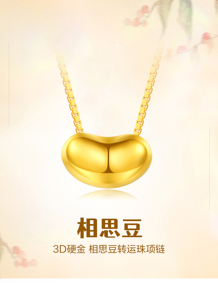 商品名称:周贝贝珠宝 相思豆 黄金3D硬金足金999女士吊坠(配S925银项链) BFD0132(单位:件) 金色