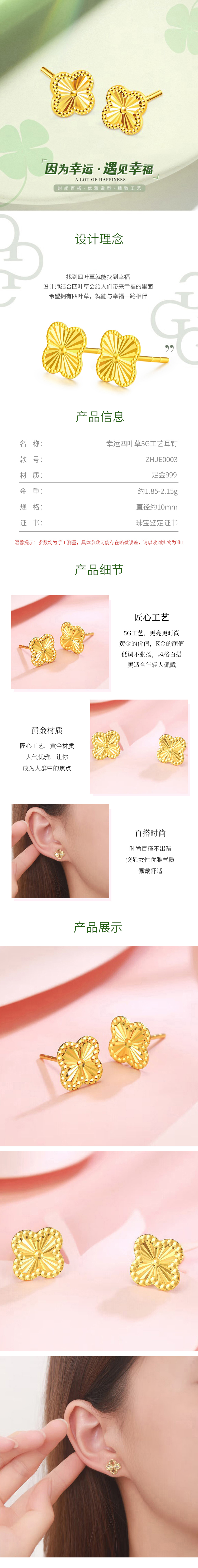 商品名称:周贝贝珠宝 幸运四叶草 黄金足金999时尚5G工艺女士耳钉耳饰 ZHJE0003(单位:件) 金色
