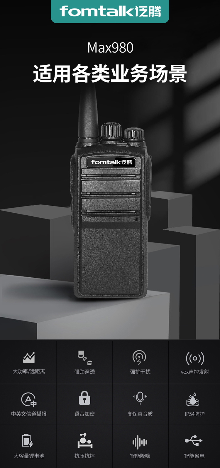 商品名称:泛腾 Max980 对讲机 国产全自主 大功率远距离超长待机 民用商用专业无线手台