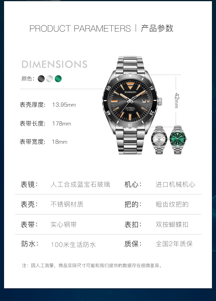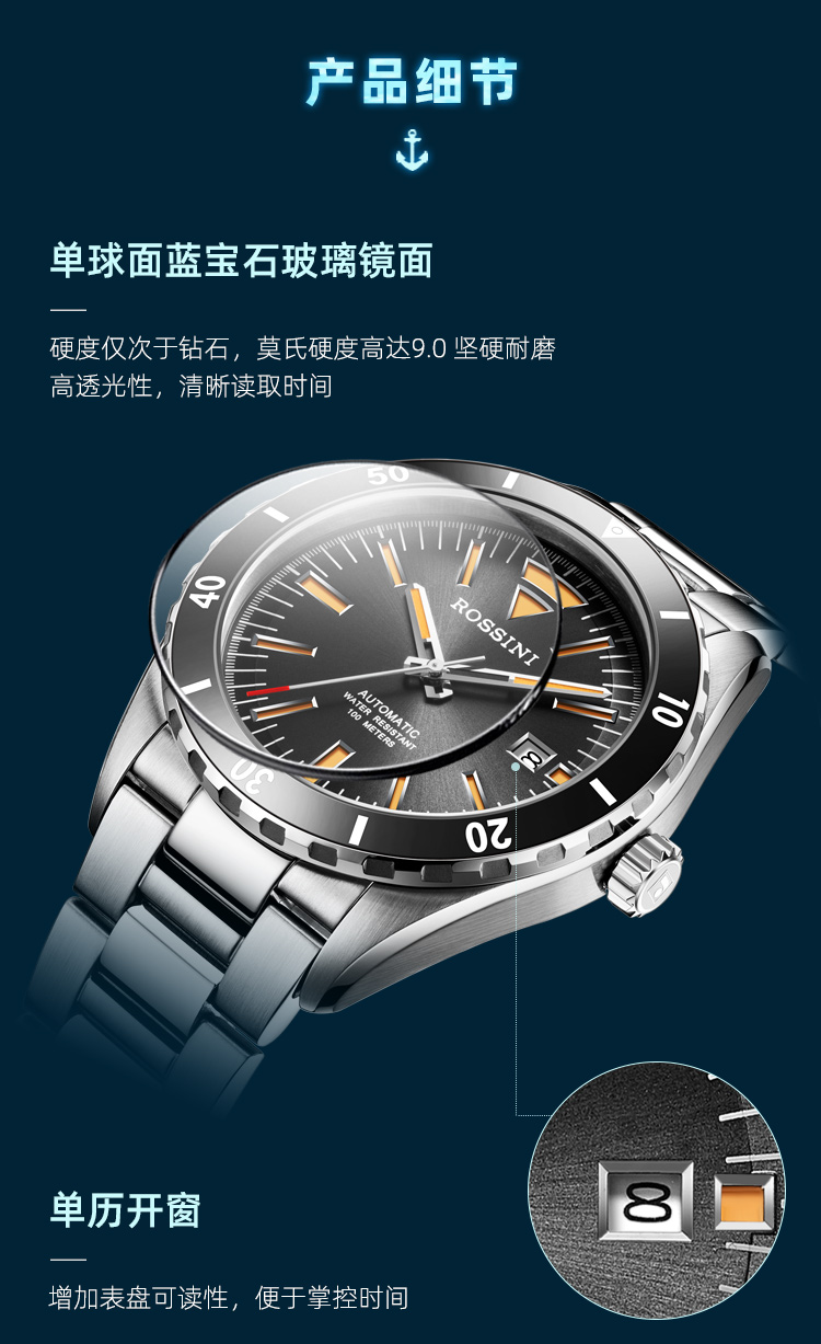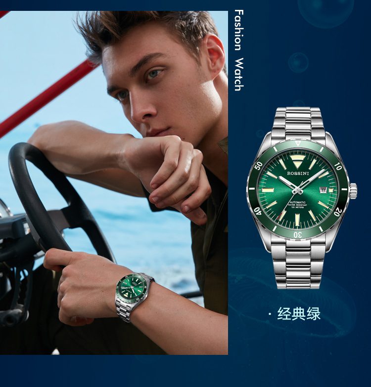 商品名称:Rossini罗西尼 航海家系列 机械手表经典绿男表50069T08C(单位:块) 绿色