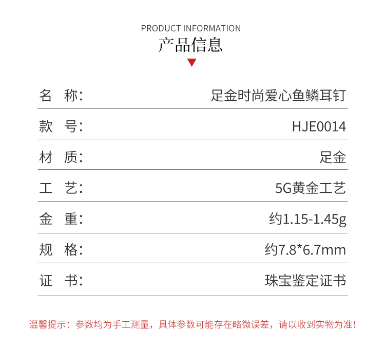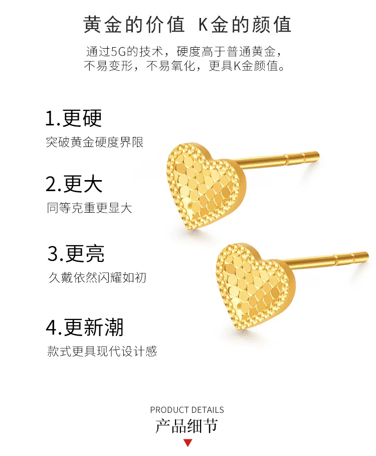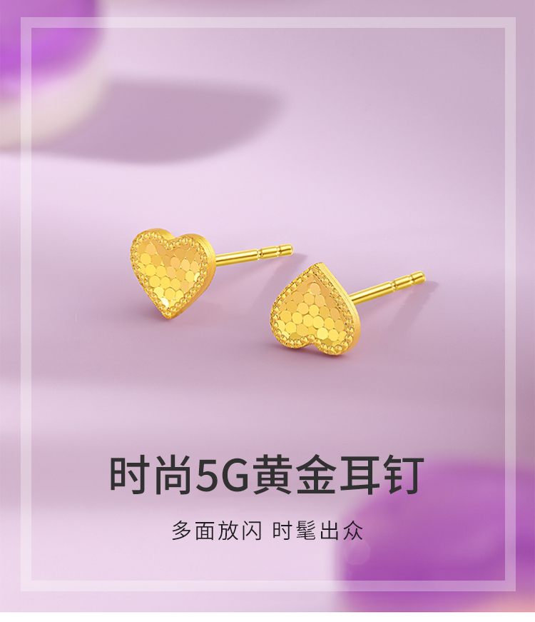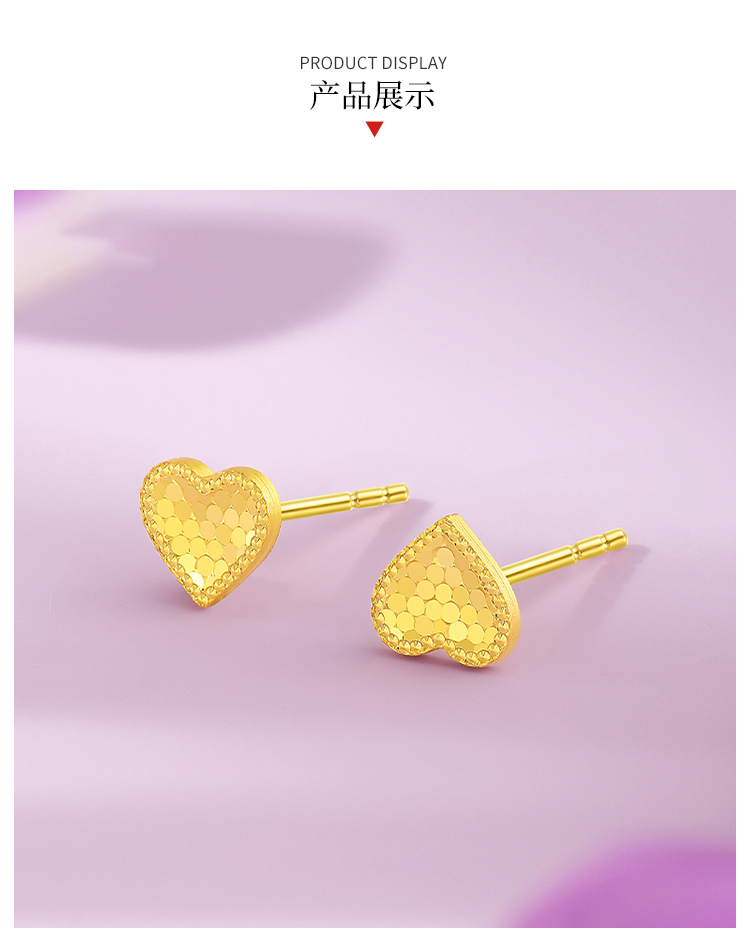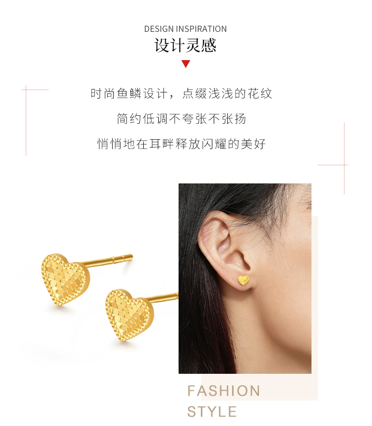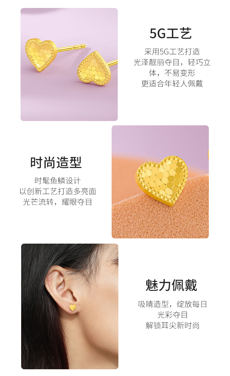 商品名称:GZUAN古钻珠宝 爱心蜂巢 足金999闪耀鱼鳞气质女士耳钉耳饰 HJE0014(单位:件) 金色