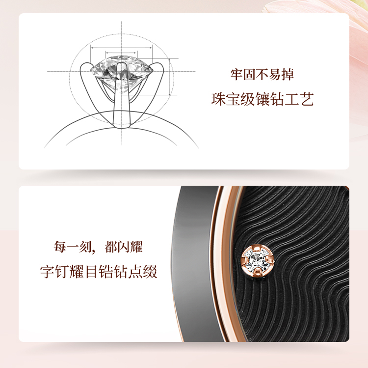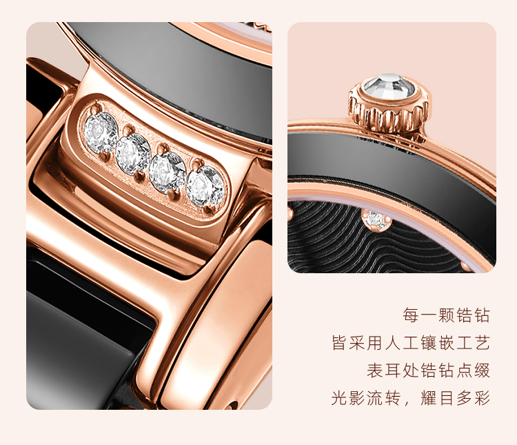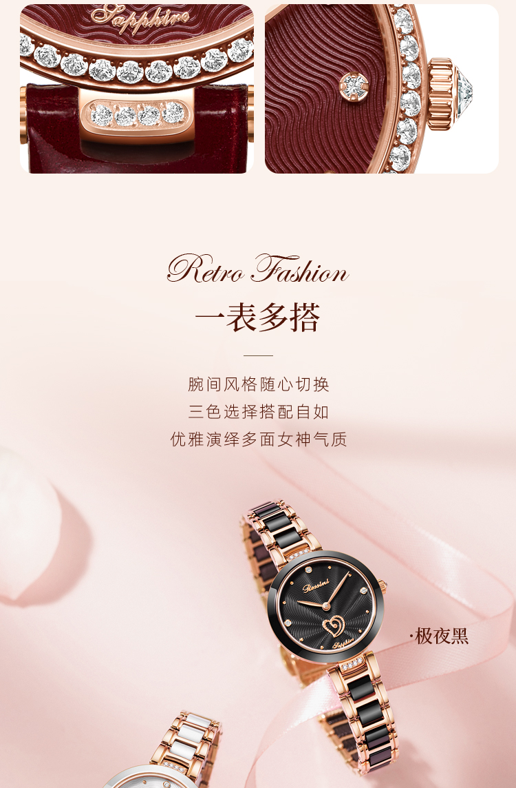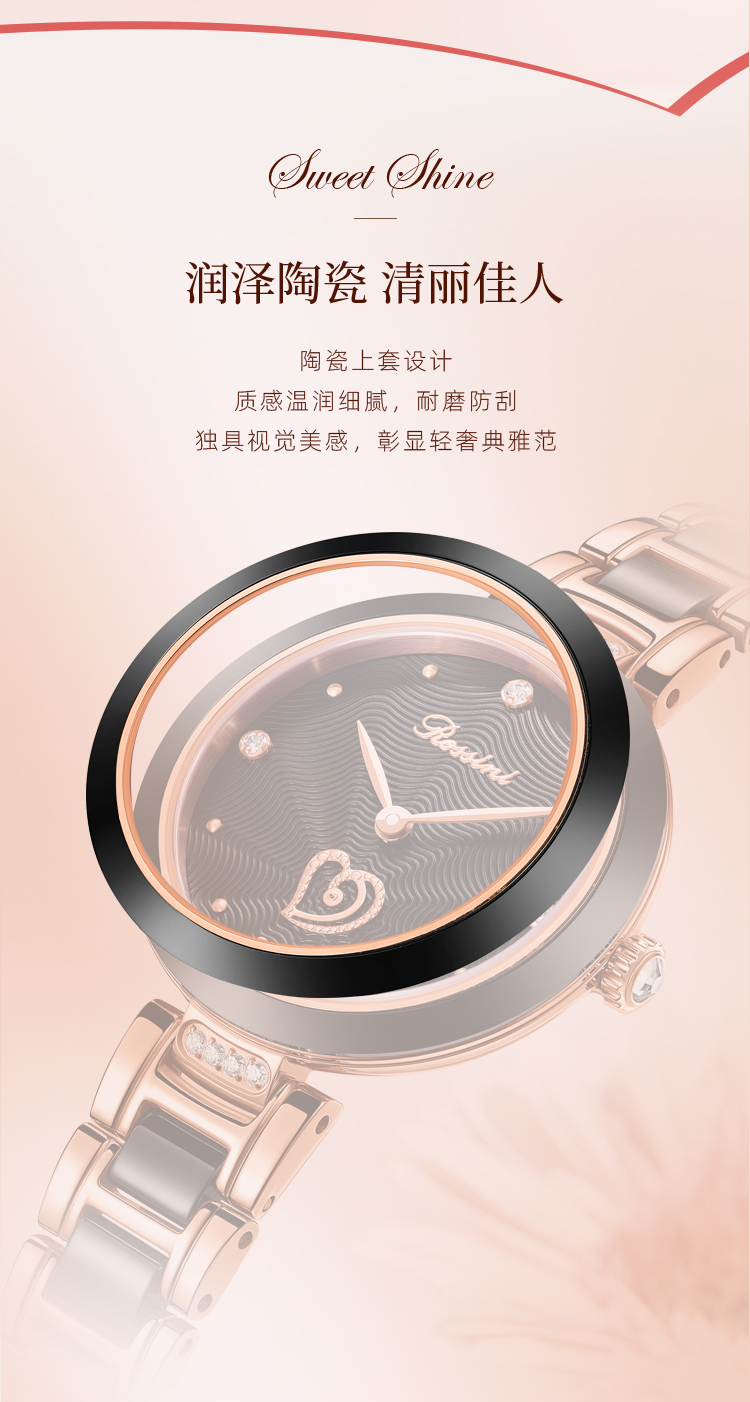 商品名称:Rossini罗西尼 典美系列 石英手表极夜黑间陶瓷带女表50102T04B(单位:块) 黑色