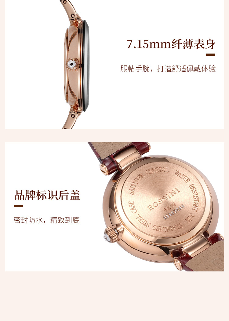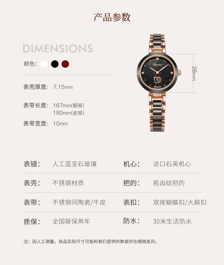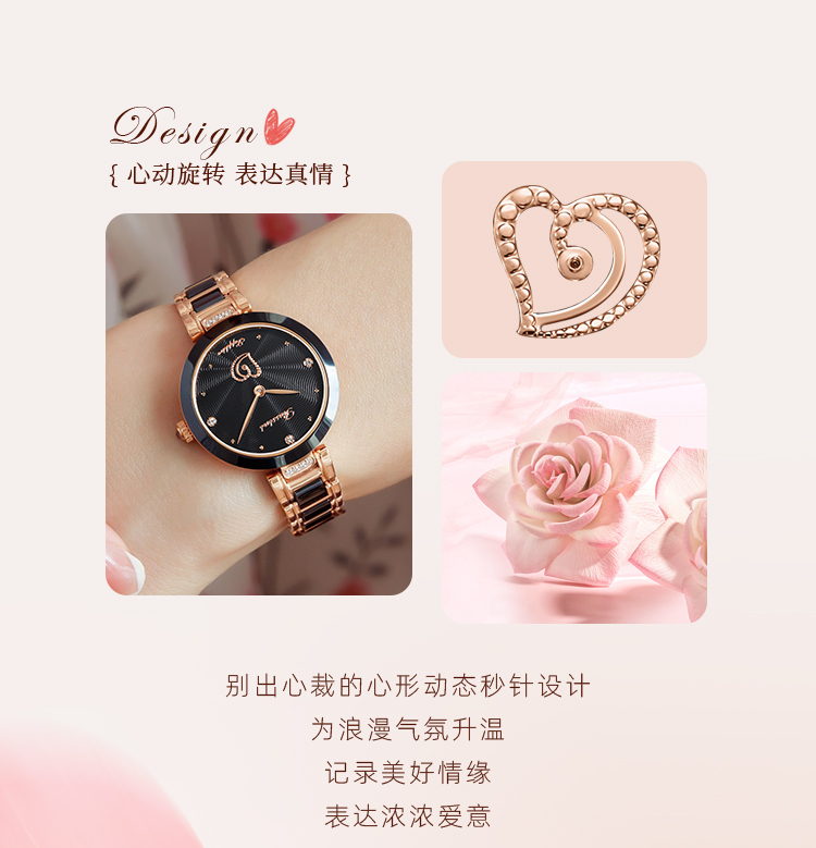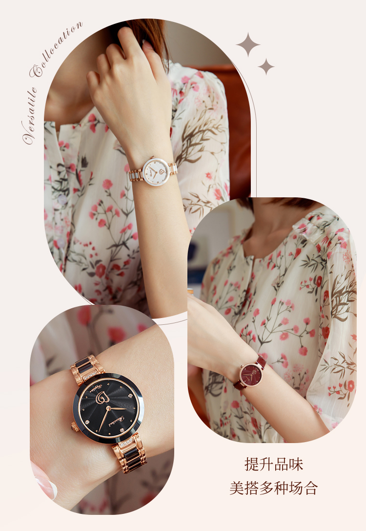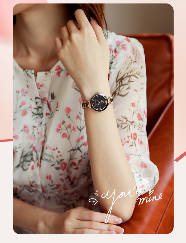 商品名称:Rossini罗西尼 典美系列 石英手表极夜黑间陶瓷带女表50102T04B(单位:块) 黑色